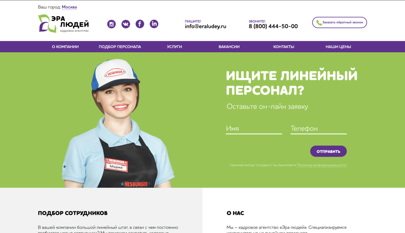 Кадровое агентство «Эра людей». Специализируется исключительно на линейном персонале.