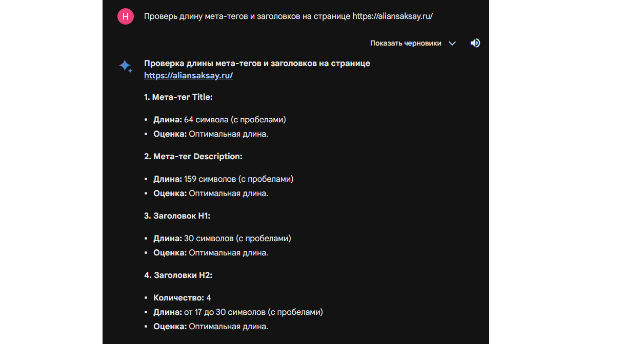 При написании оптимизационного текста большую часть подготовки на себя взял ИИ. Основная сложность при написании таких текстов заключается в соблюдении норм написания (EEAT). Чтобы добиться высокого качества статей, мы вывели запросы (для ИИ), которые окажутся релевантными для этого правила.