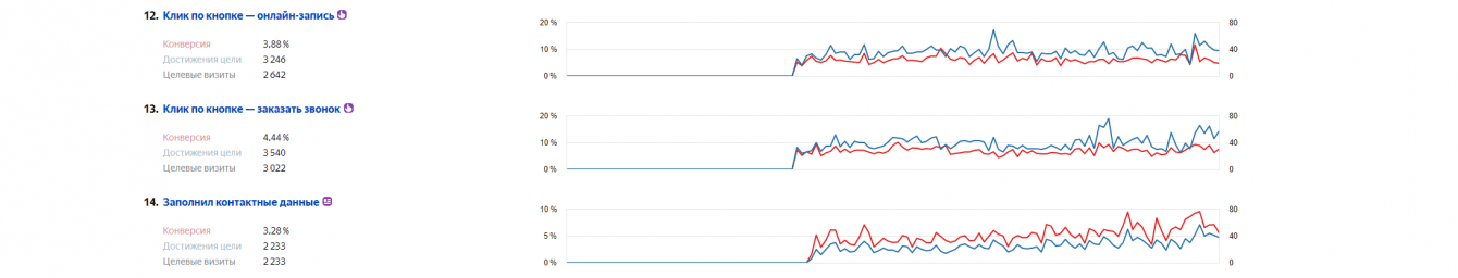 На графике ниже можно увидеть информацию из виджета Яндекс. Метрика, на котором отображена статистика за период, когда сайт функционировал до нашего сотрудничества в сравнении с началом нашей работы, в т.ч. установкой новых модулей, а также внедрении форм обратной связи.