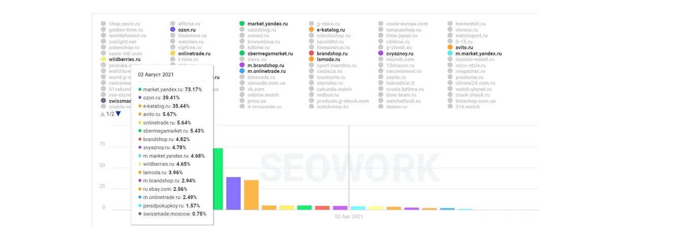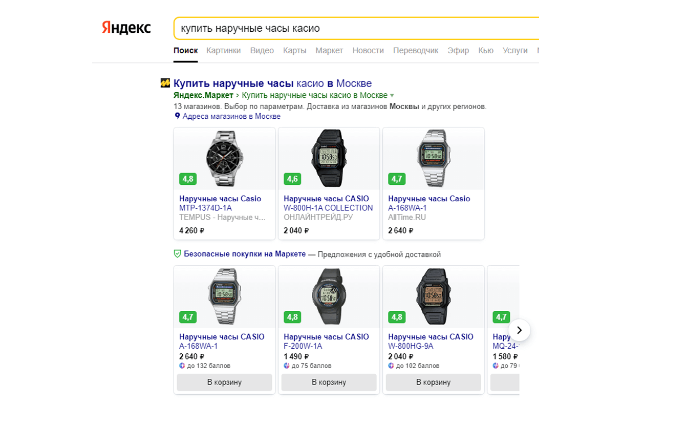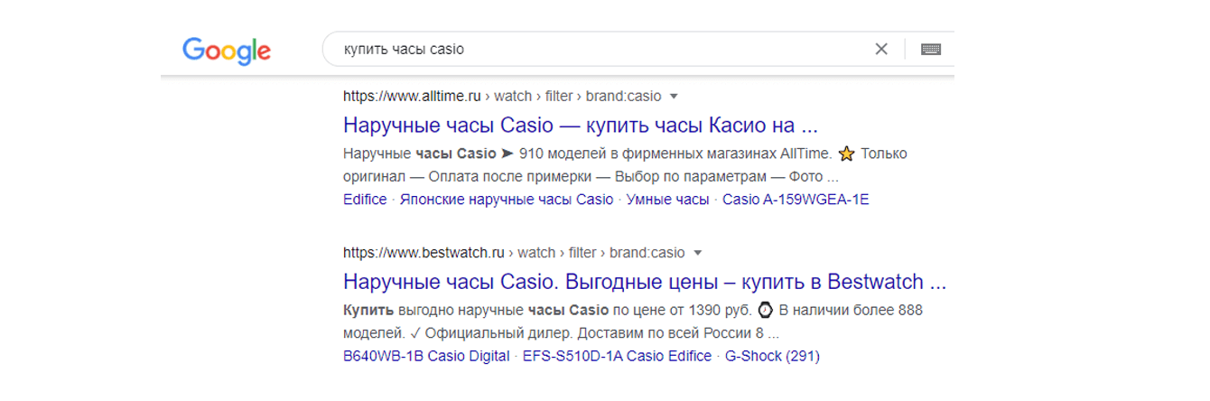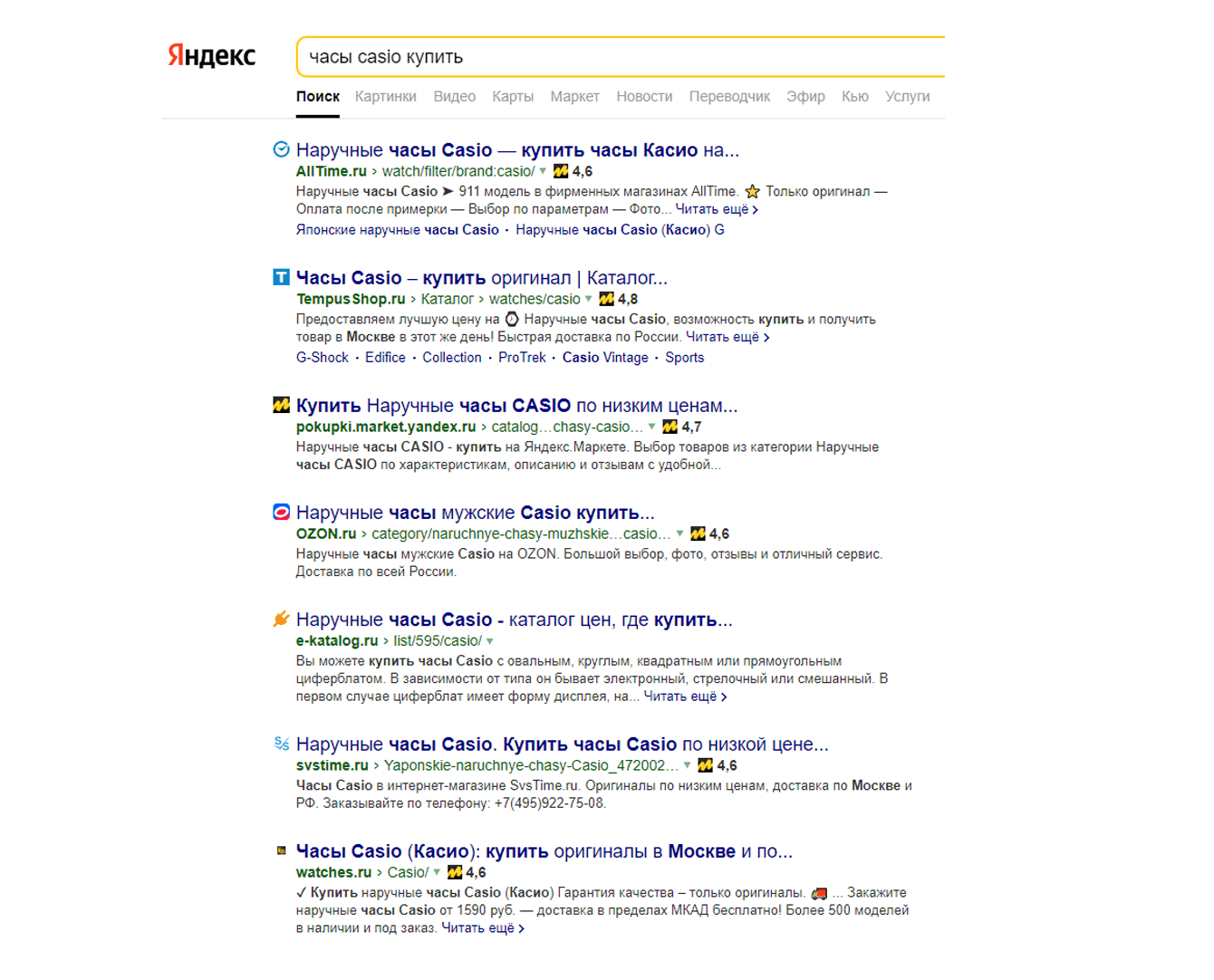 2️⃣ Кроме мультибрендов в поисковой выдаче идет активная конкуренция с другими монобрендовыми-магазинами Casio.