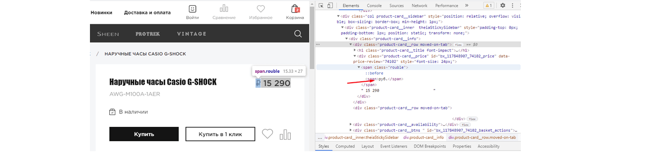 2. Обратили внимание на вывод значка валюты. Красивый символ ₽ отображался на странице, но в коде отсутствовало обозначение валюты.