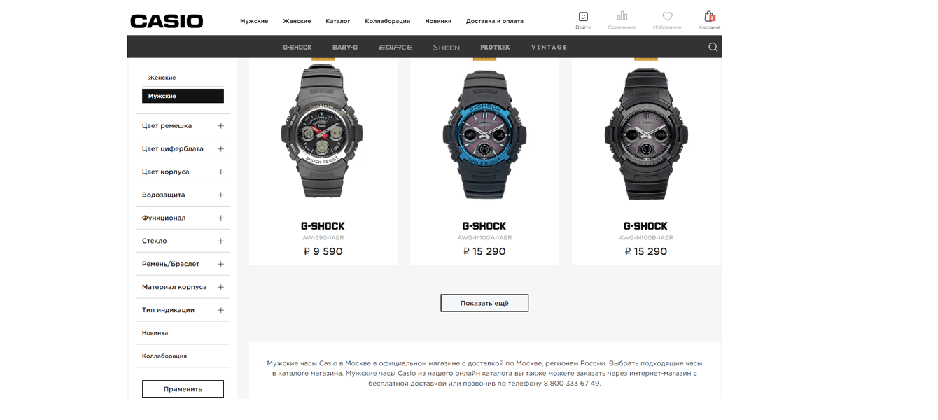 Стоить отметить, что кроме интернет-магазина часов бреда, которому посвящен данный кейс, мы также занимались проектами клиента: musicstore.casio, cdp-s.ru, privia.ru и casiotone.ru.