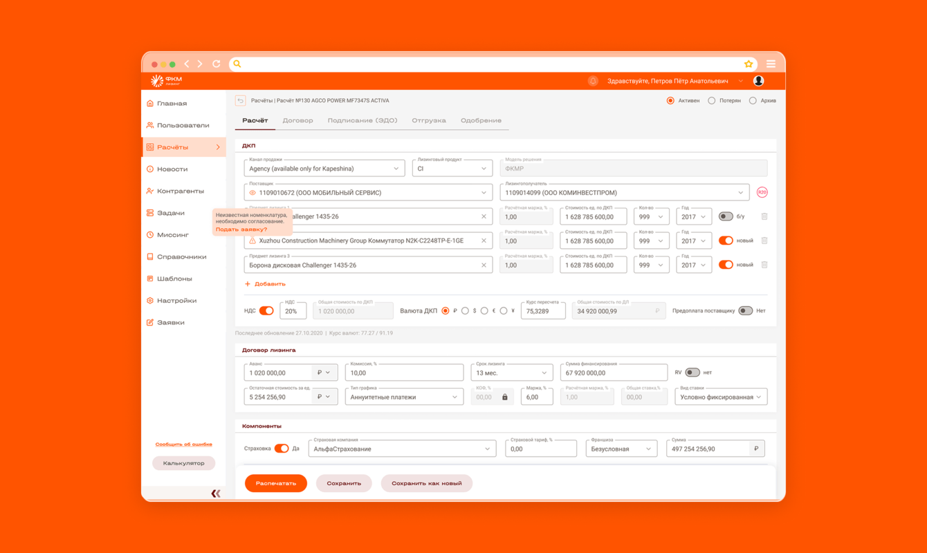 - Расчет лизинговых продуктов с использованием приложений iOS, Android, WEB, Telegram bot.
