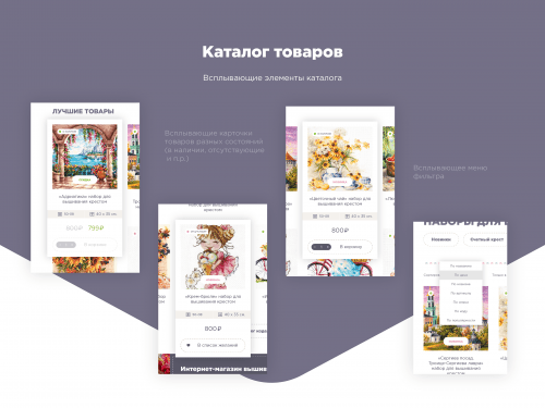 • Разработка каталога товаров с акцентом на визуальную привлекательность и удобство использования, позволяющего пользователям легко находить нужные продукты.