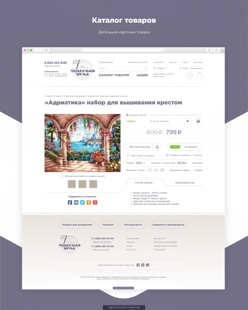Проект для интернет-магазина “Чудо игла” включал разработку с нуля современного дизайна, охватывающего все аспекты пользовательского интерфейса. Основные задачи и особенности проекта включали следующие этапы: