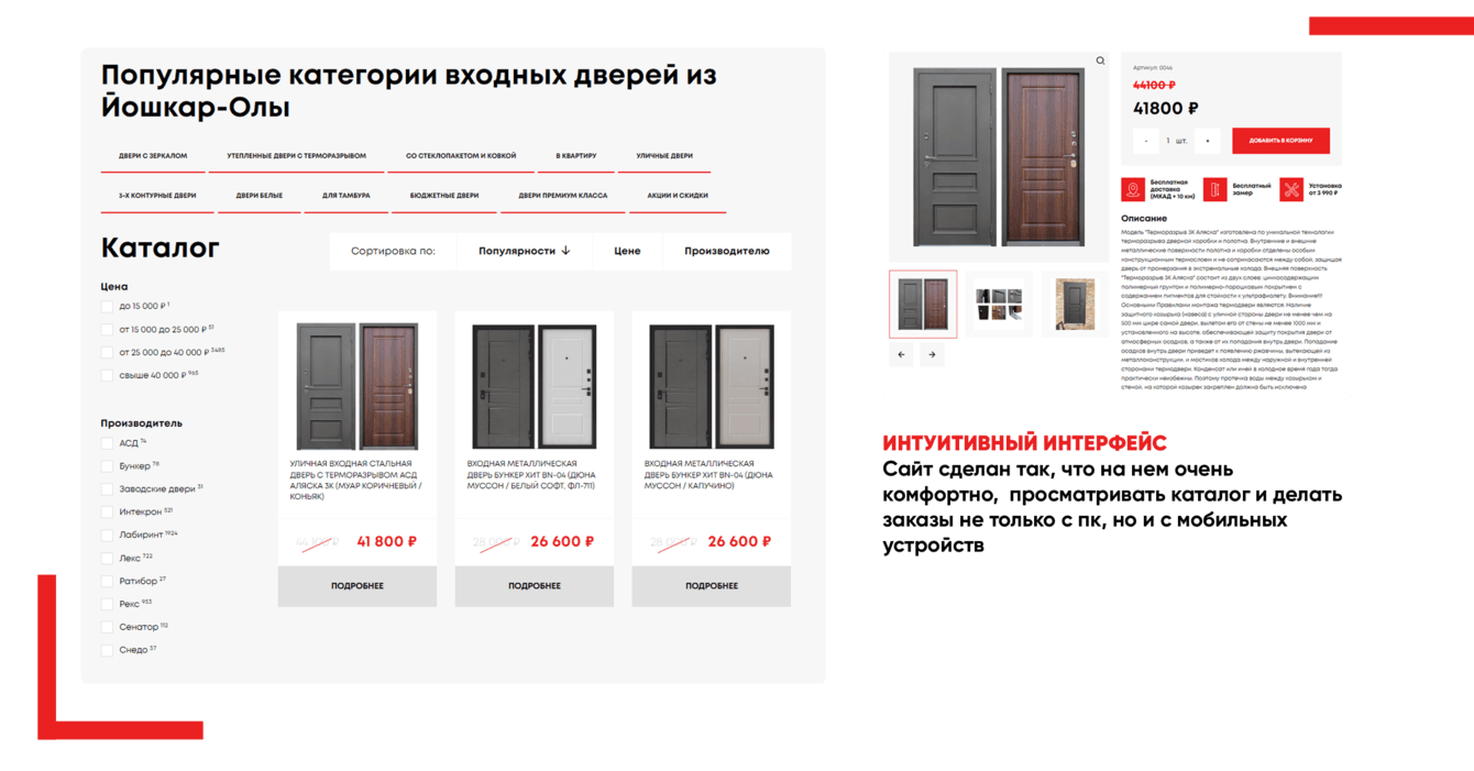 Разработать приносящий прибыль интернет магазин «Yoshkarola Doors», который будет привлекать клиентов через таргетированную и контекстную рекламу, хорошо оптимизироваться в SEO, с удобным пользовательским интерфейсом и наличием корзины для удобства покупки.