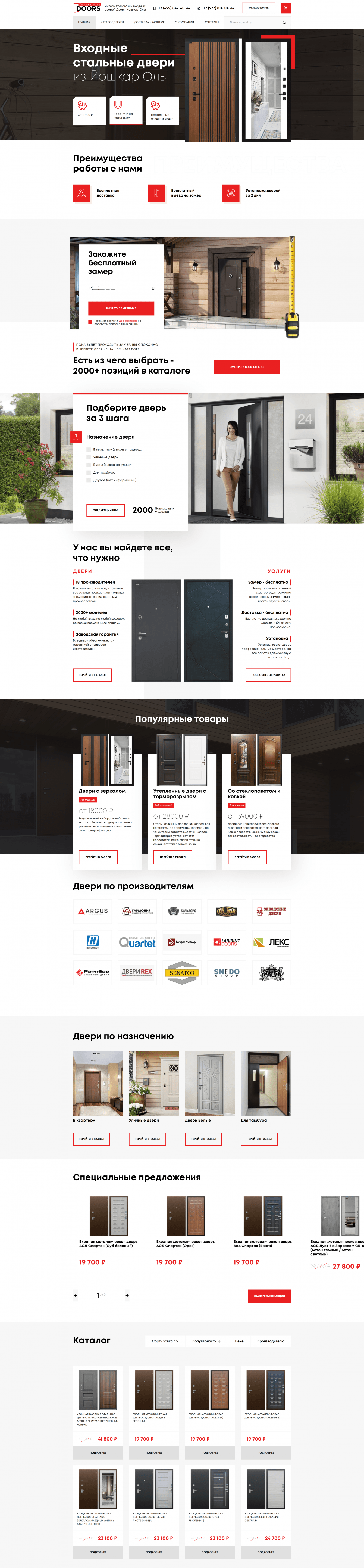 Разработка данного проекта проходила в несколько этапов. В начале нашей работы мы провели маркетинговое исследование, которое помогло нам выявить: тренды и лучшие интернет магазины дверей на рынке, характер потенциальных клиентов и их потребности. Далее произвели юзабилити-тестирование сайтов конкурентов на независимых пользователях и приступили к проектированию.