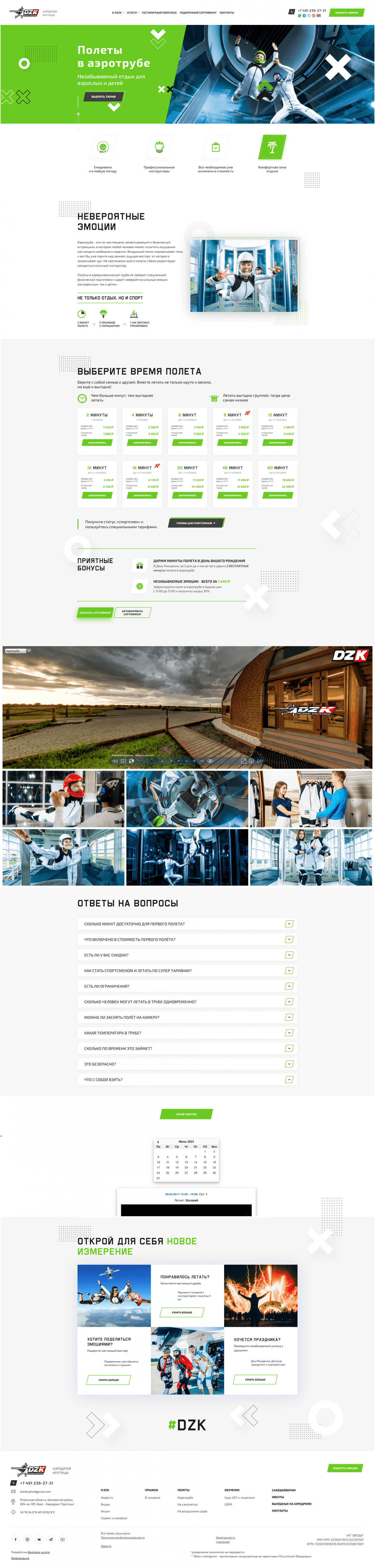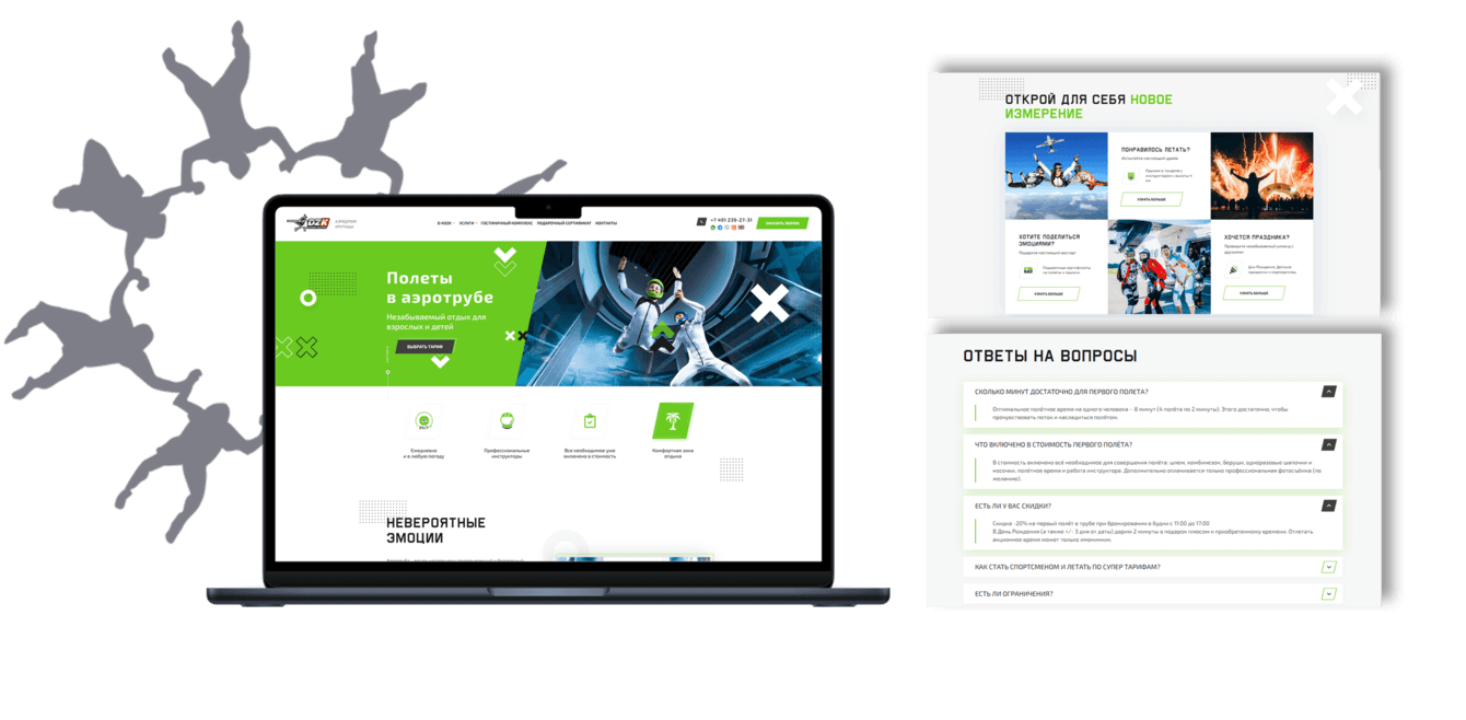 Основной задачей было – разработать сайт со «стильным, модным, молодежным» дизайном, а также с возможностью онлайн продажи сертификатов, и отправкой заявки на бронирование прыжка.
