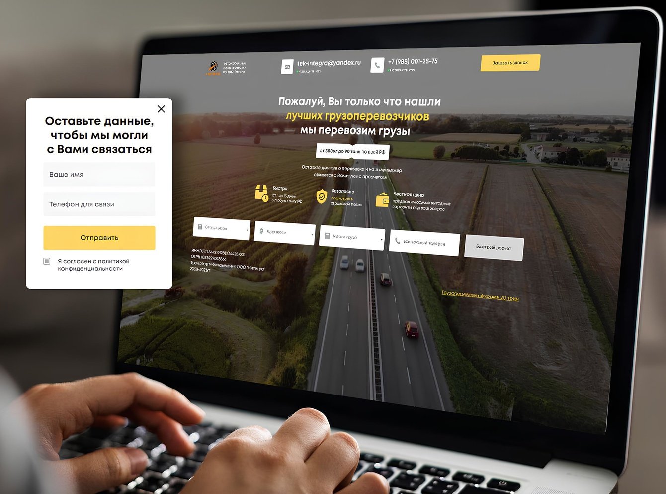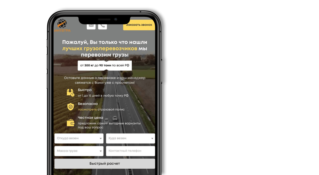 Основная задача — в кротчайшие сроки разработать посадочную страницу для ниши автомобильных грузоперевозок и запустить на нее рекламу.