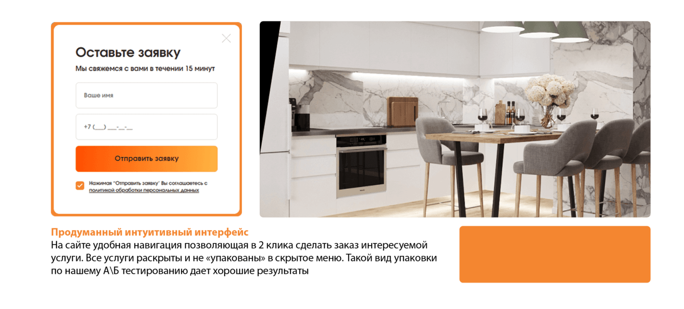Для увеличения времени внимания клиента — сделали игровые квизы и калькуляторы, которые «ну так и хочется понажимать». По статистике в момент «игры» люди легче оставляют заявки. А мы это подтвердили делом!