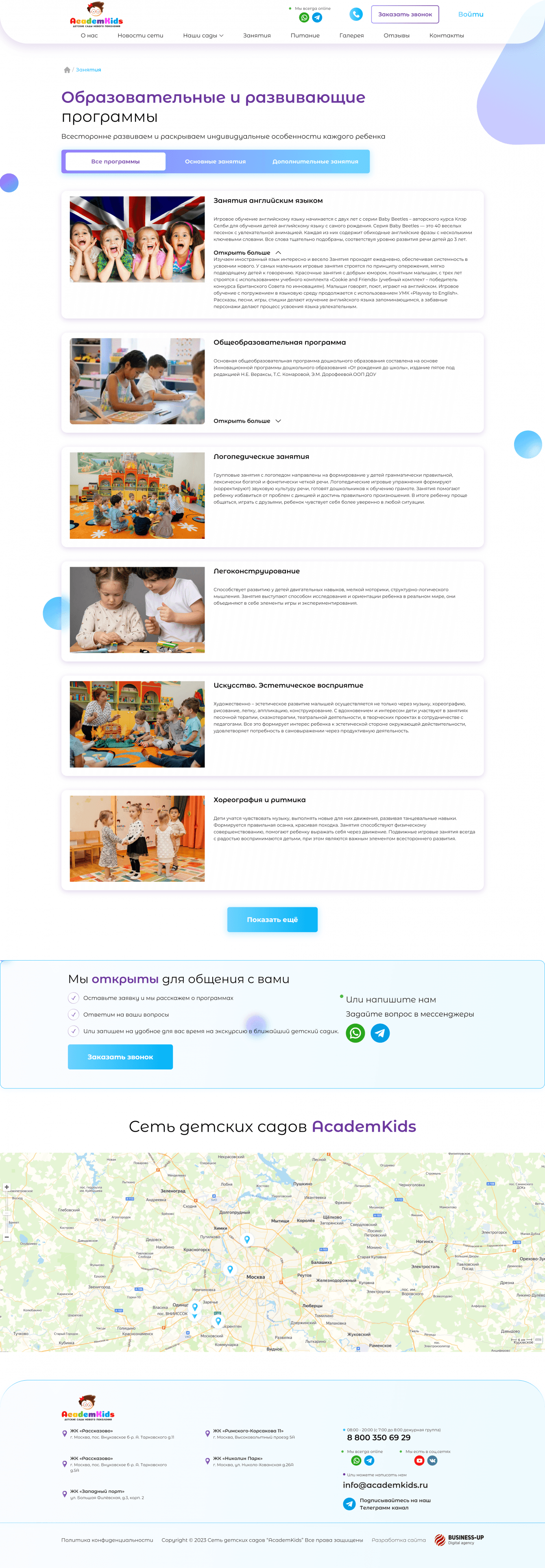 Сеть садов «Academkids» — команда профессионалов, знающих, каким должен быть современный детский сад, чтобы отвечать государственным требованиям к комфорту и безопасности детей, запросам родителей и, главное, потребностям детей.
