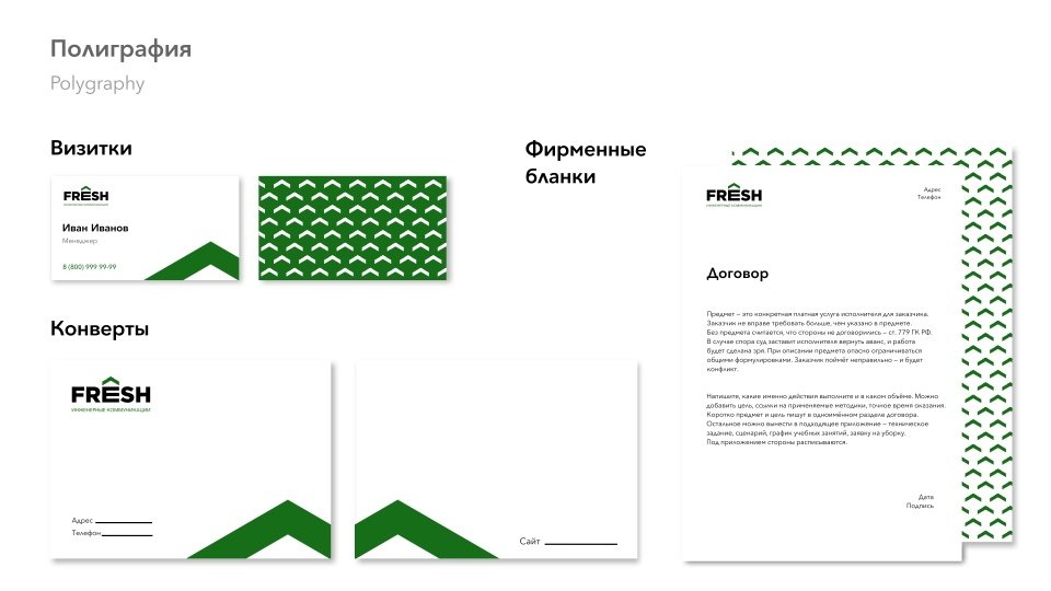 Для компании Fresh, занимающейся инженерными коммуникациями для жилых домов и коммерческих организаций, нужно было разработать: логотип, фирменные цвета, полиграфию.