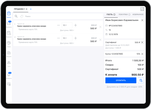 В логике решения была возможность оформления как розничной продажи, так и самовывоза. Дополнительно интегрировали систему с кассой и терминалом для оплаты. Это позволяет проводить оплату по наличному и безналичному расчету.