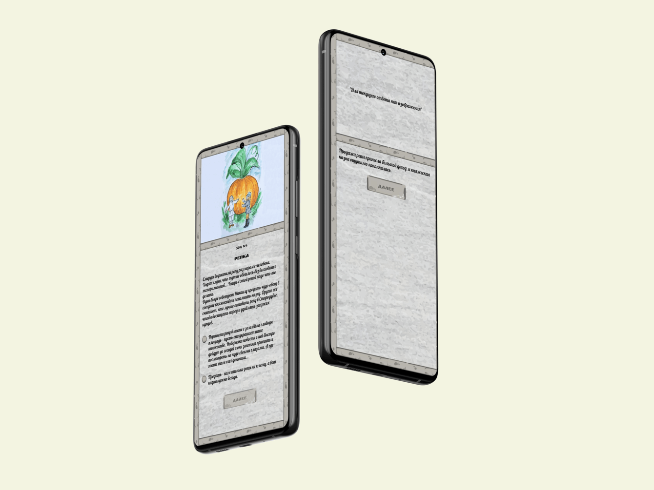 Необходимо было разработать мобильное приложение, представляющее из себя визуальную новеллу.