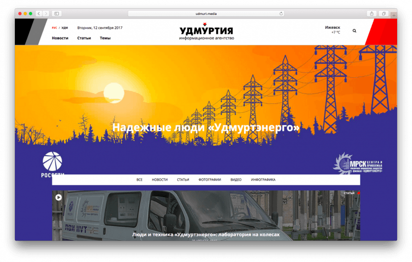 Для максимального удобства читателей мы уделили большое внимание структуре и дизайну ресурса. Сайт приобрел современное «лицо». Проект отвечает высоким требованиям электронных СМИ и реализован в минималистичном flat-дизайне, выполненном в цветах удмуртского флага.