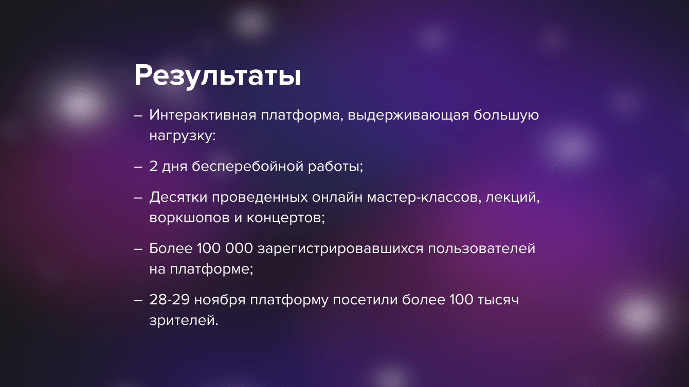 28-29 ноября платформу посетили 60 тысяч зрителей.