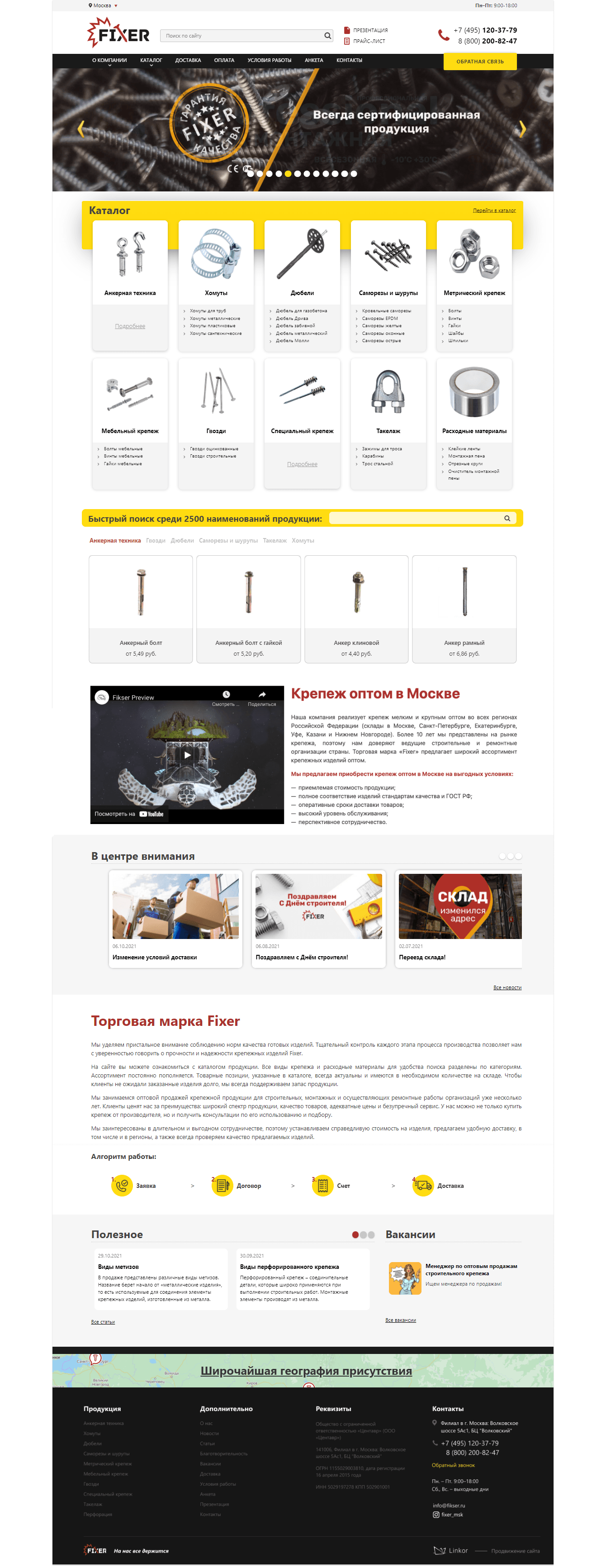 Перенести достаточно крупный сайт оптового поставщика крепежей на платформу 1С-Bitrix. Реализовать в каталоге товаров торговые предложения для всех видов крепежей. Пересмотреть структуру и навигацию на сайте.