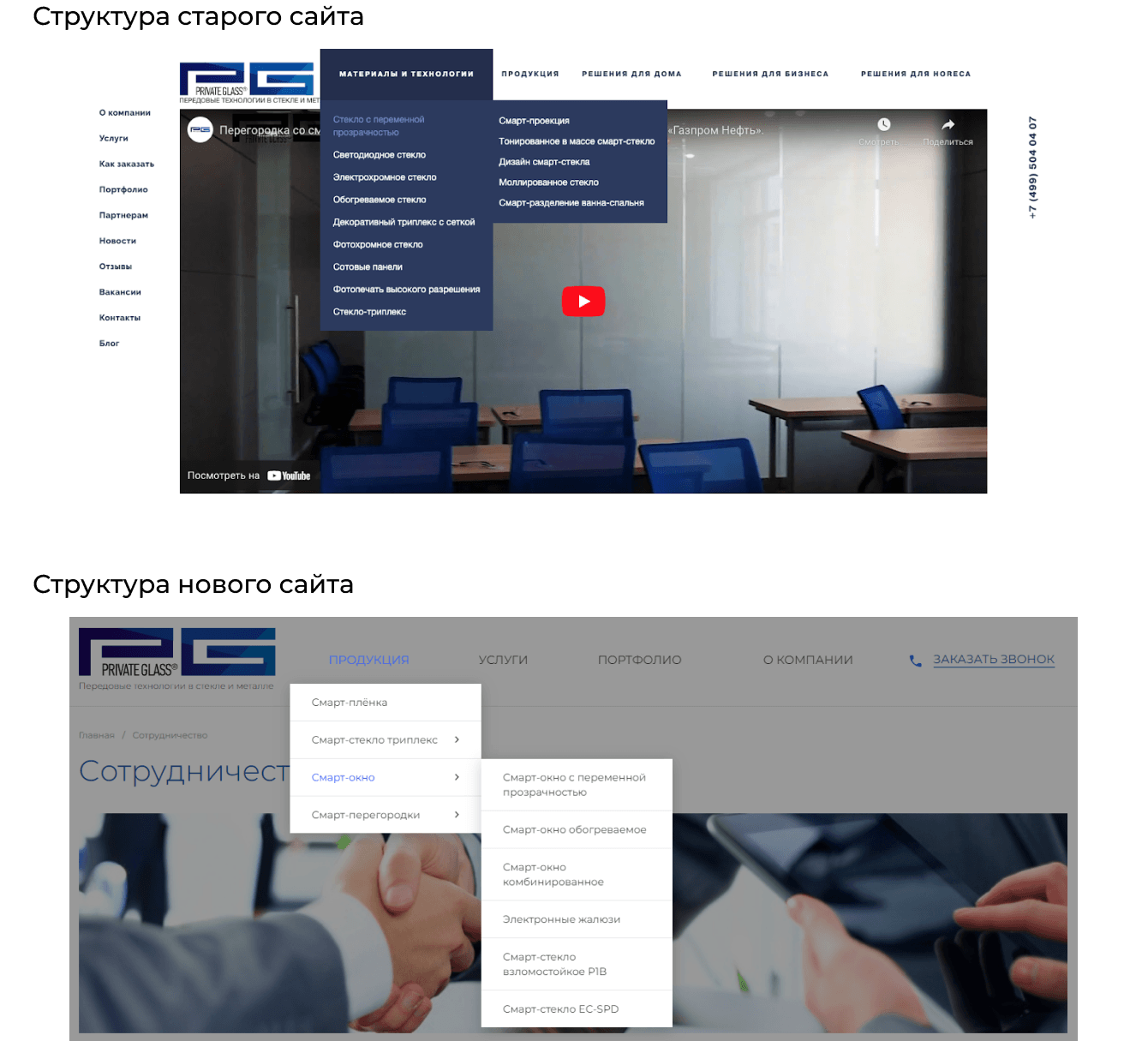 Старый сайт имел очень перегруженную структуру, которую мы облегчили и заново спроектировали совместно с seo-специалистом.