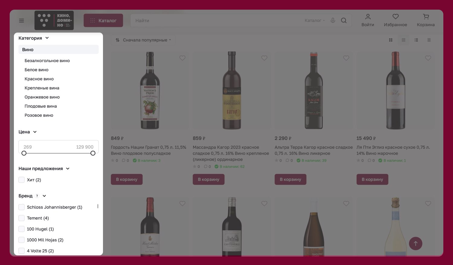 Отдельное внимание уделили фильтрам — они помогают быстро находить нужный товар в большом ассортименте.