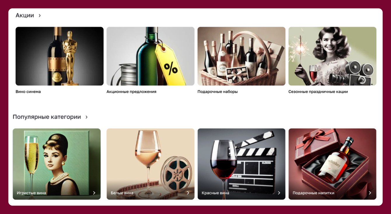 Мы разработали визуальные блоки и баннеры, включая акционные элементы (например, блок с подарочными картами).