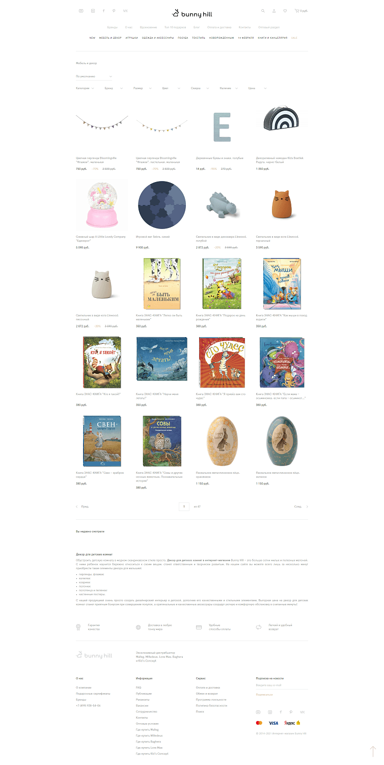Разработать сайт для интернет-магазина дизайнерских игрушек и предметов интерьера для детских комнат. Необходимо упаковать все товары и услуги, а также отразить преимущества и гарантии данного онлайн-магазина.