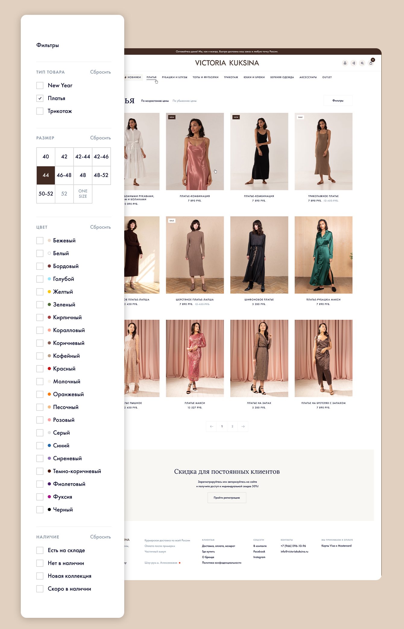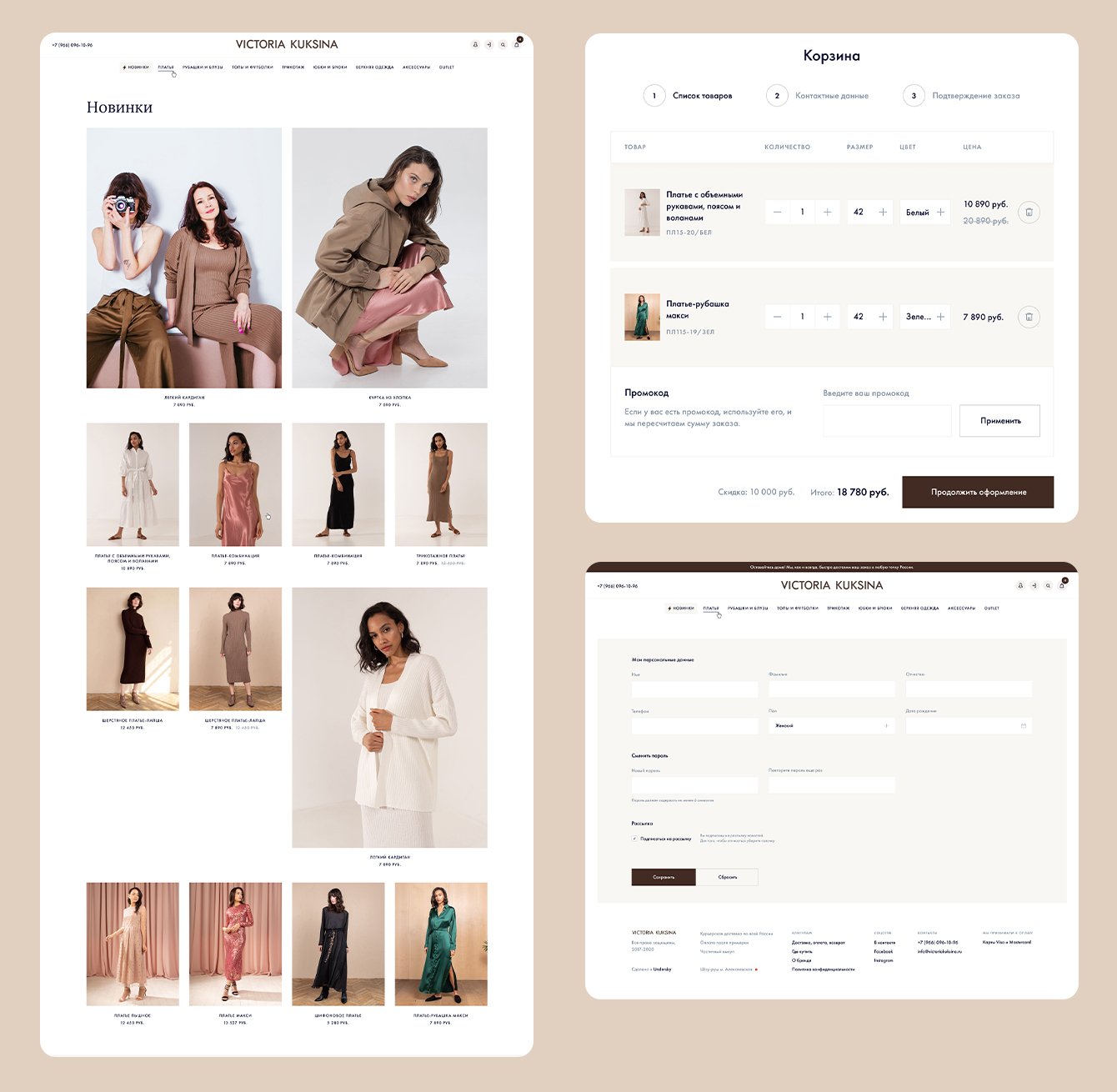 В результате глобального редизайна и расширения возможностей интернет-магазина в распоряжении бренда оказался эстетичный и функциональный сайт, работать с которым удобно и клиенту, и пользователям. Минималистичное оформление сайта не отвлекает внимание от товаров, подчеркивая их уникальность и красоту. В обновленном интернет-магазине появилось множество автоматизированных процессов, которые дают клиенту возможность тратить меньше ресурсов на прием, обработку и отслеживание заказов. Пользователи могут с удовольствием путешествовать по каталогу товаров, сортируя их не только по типу, размеру и цвету, но и изучать отдельные коллекции, знакомиться с акциями и скидками, а также рассматривать уже готовые образы, вдохновляющие на новые покупки.