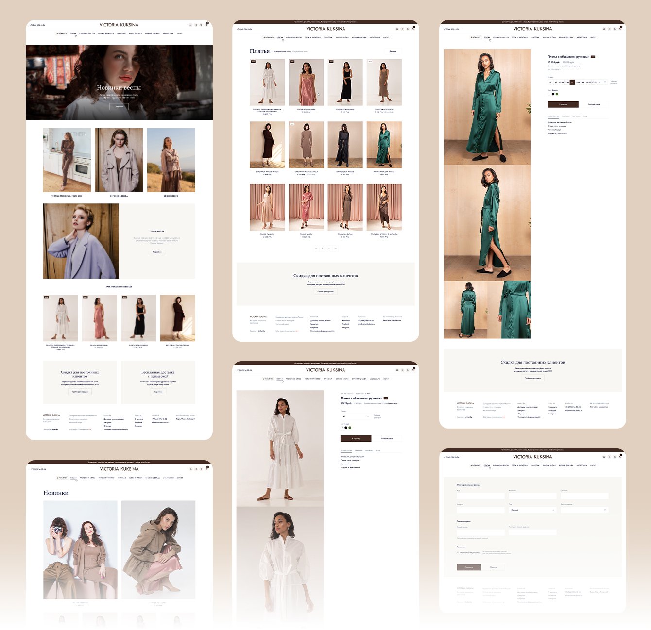 Новый дизайн магазина создавался с акцентом на новое позиционирование бренда. Кроме того, одним из пожеланий клиента было более современное и свежее оформление сайта. Мы приняли решение разработать дизайн таким образом, чтобы он не отвлекал внимание от товаров, а, напротив, подчеркивал их красоту и уникальность. Именно поэтому был выбран минималистичный стиль с легкими шрифтами и сдержанными нюдовыми оттенками. Все разделы сайта выглядят легко и не перегружены лишними деталями.