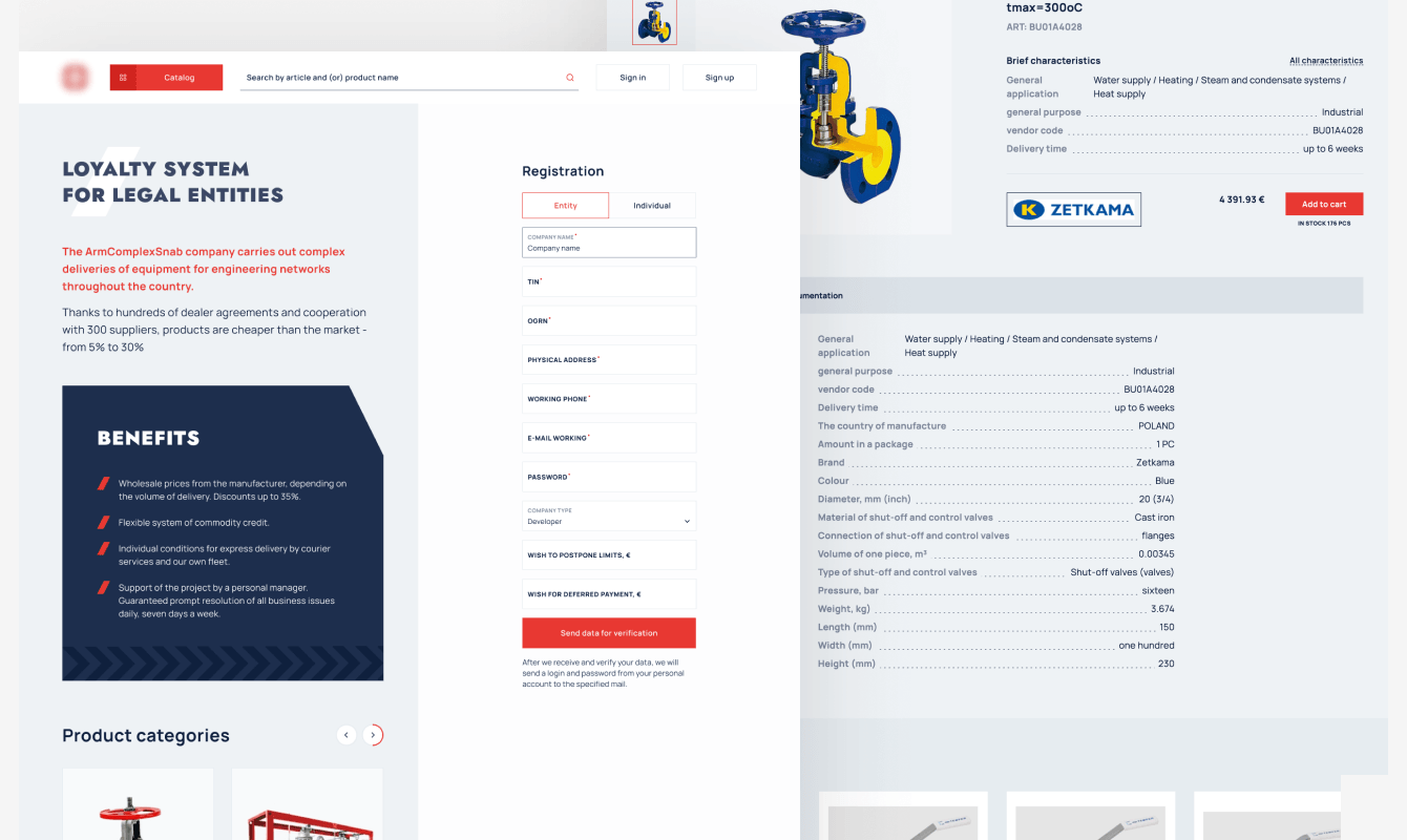 На сайте была предусмотрена широкая товарная матрица с интеграцией через 1С: планируется разместить свыше 1 млн товаров.