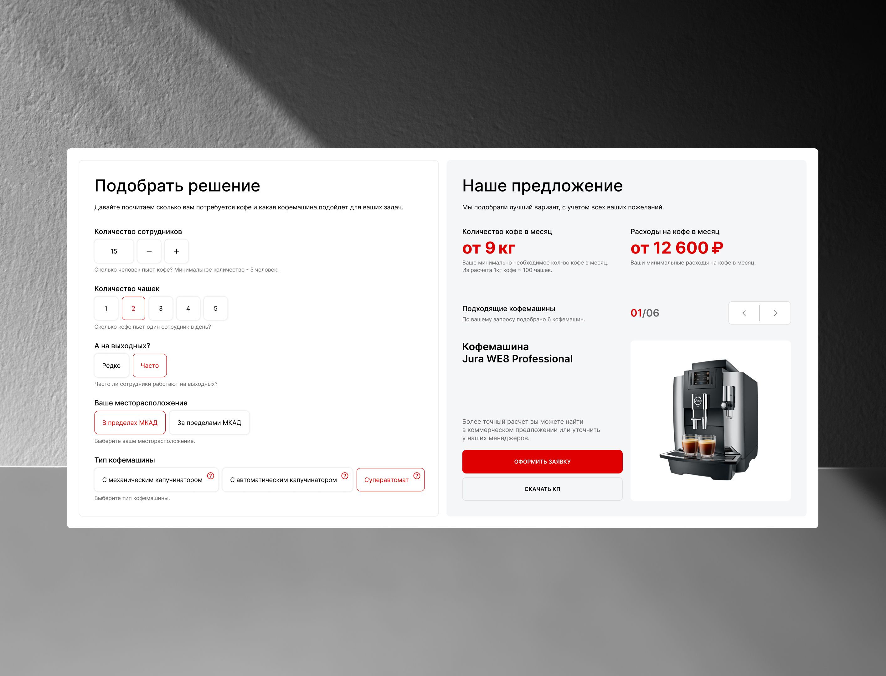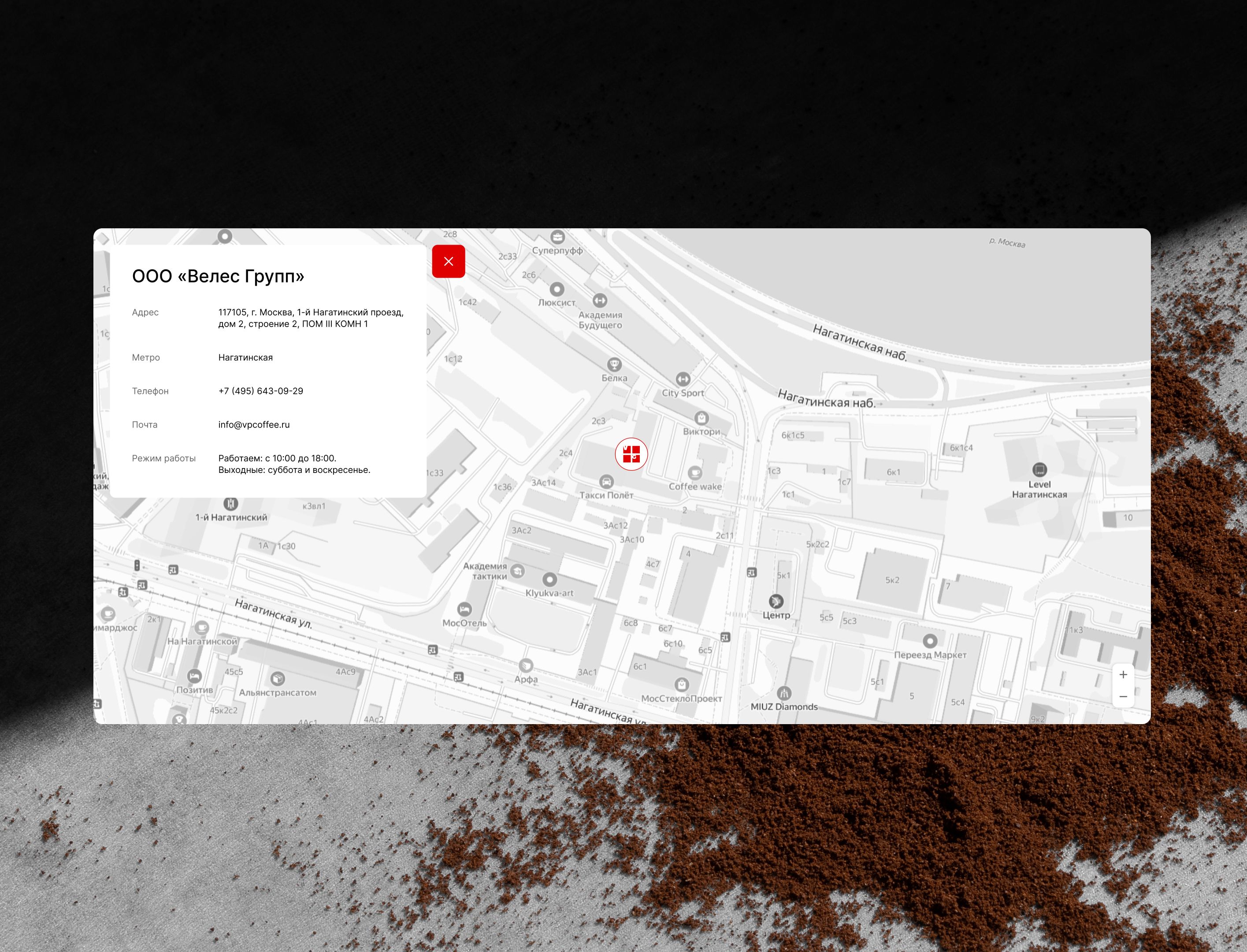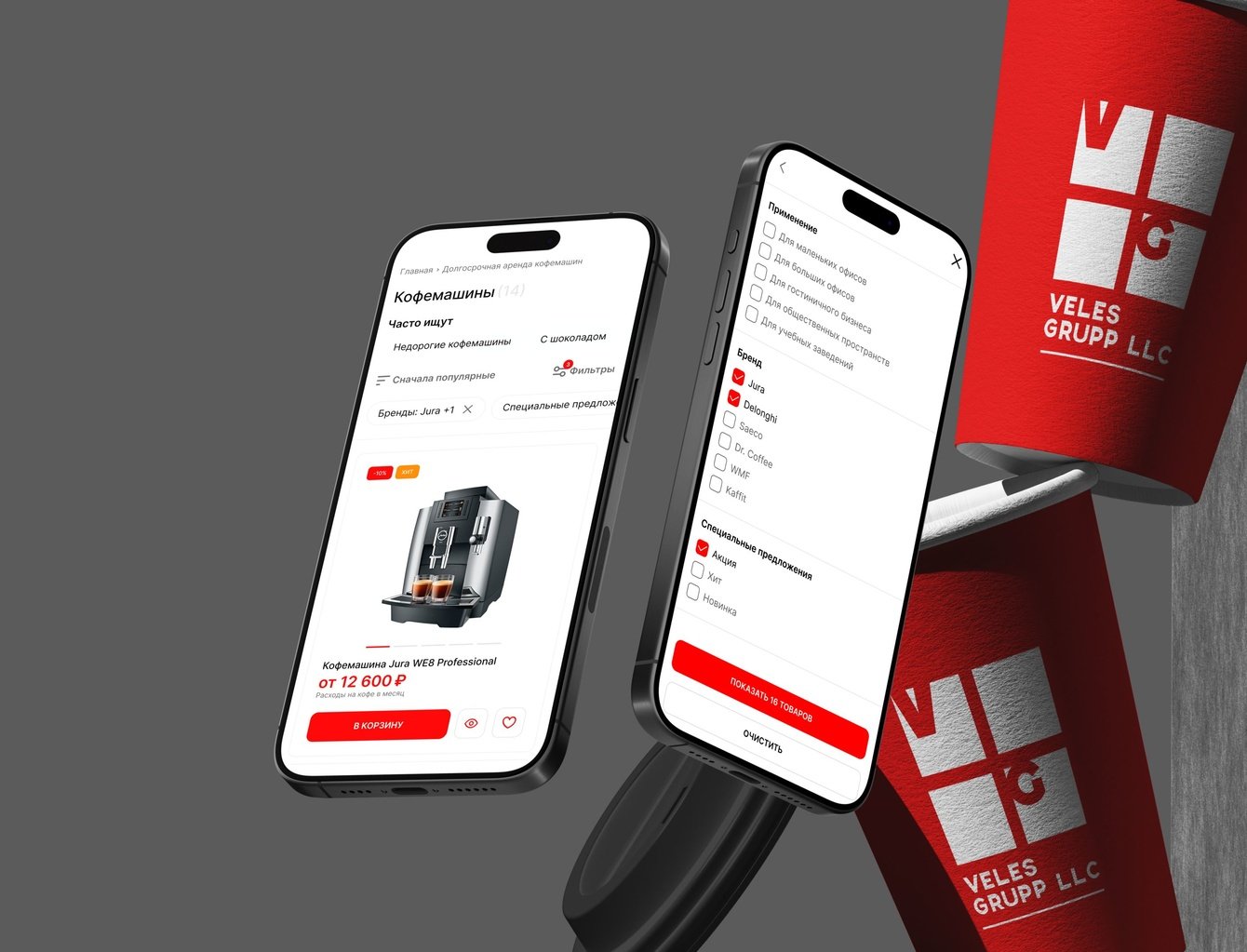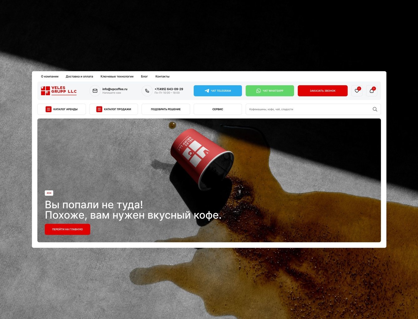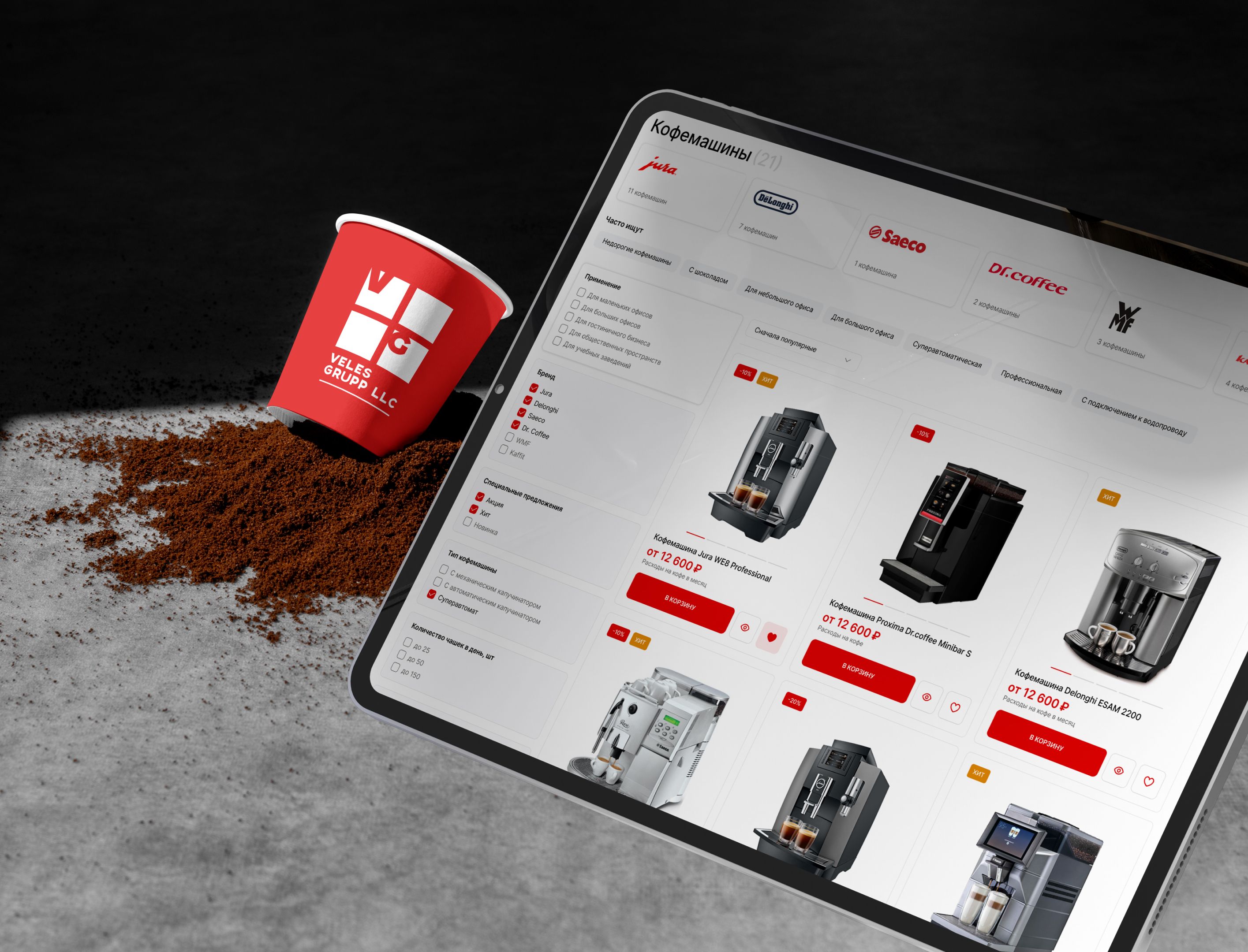 Разработать интернет-магазин для компании «Велес Групп», специализирующейся на поставках высококачественного кофе и бесплатной аренде кофемашин. Сайт должен был предоставить клиентам удобный доступ к каталогу кофе, информации об аренде кофемашин и обеспечить комфортные условия заказа.