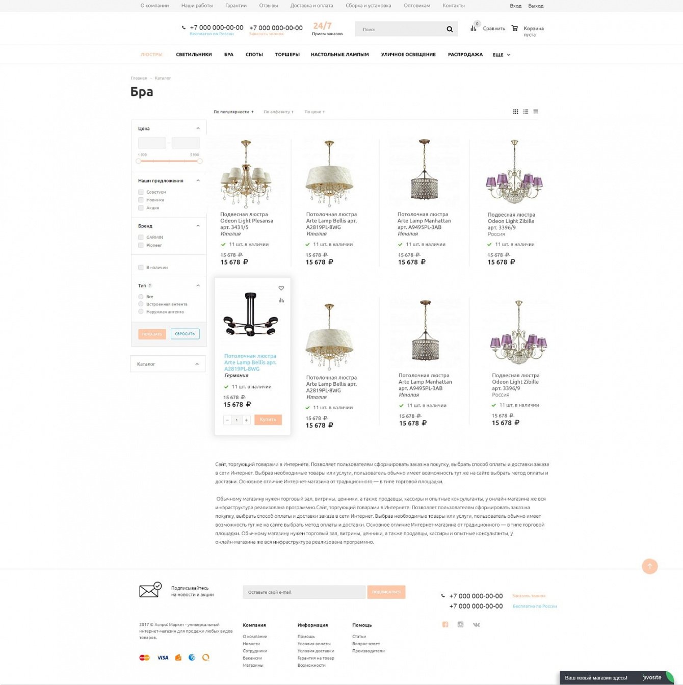 Разработать интернет-магазин для онлайн-гипермаркета освещения "Lumeron".