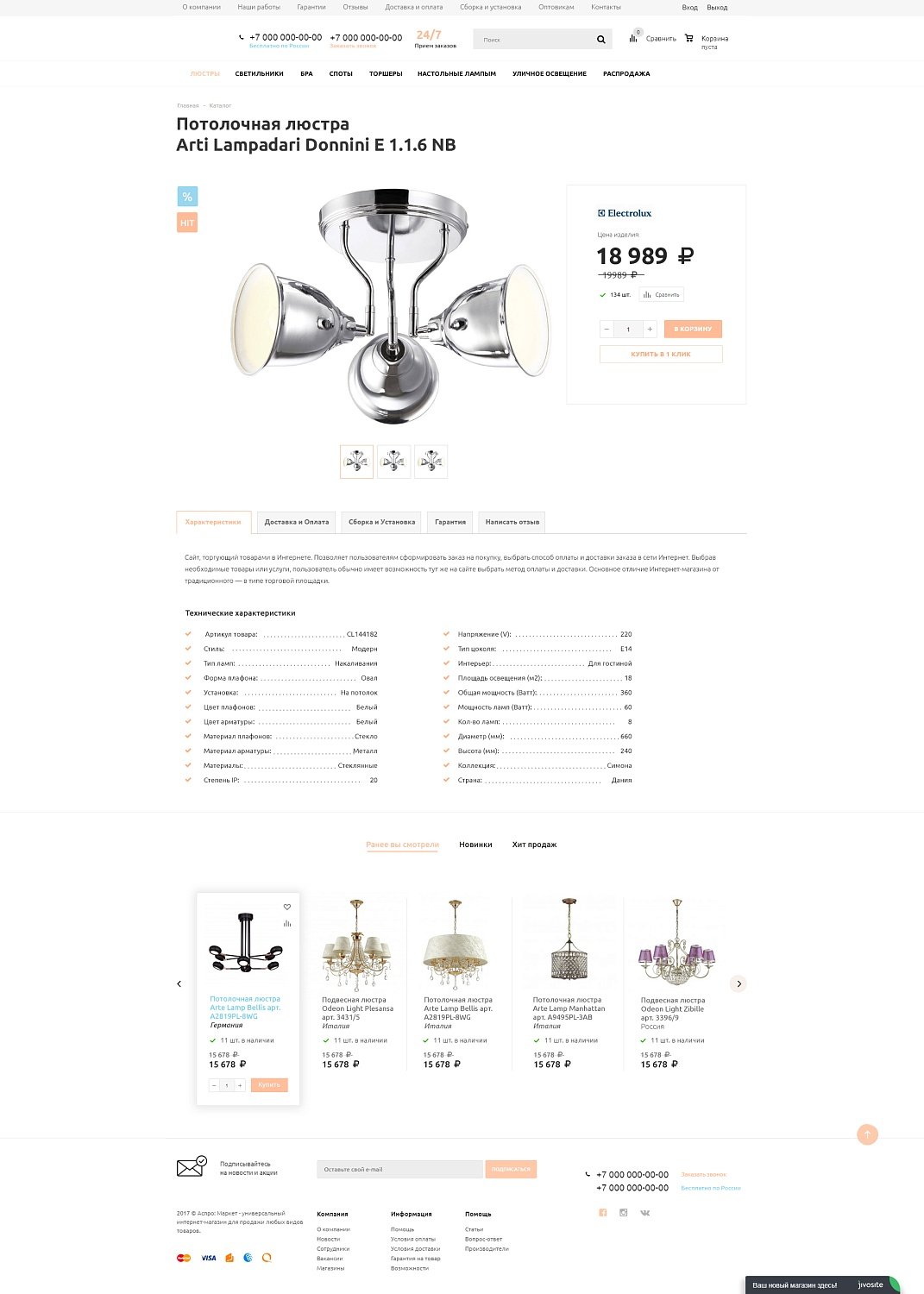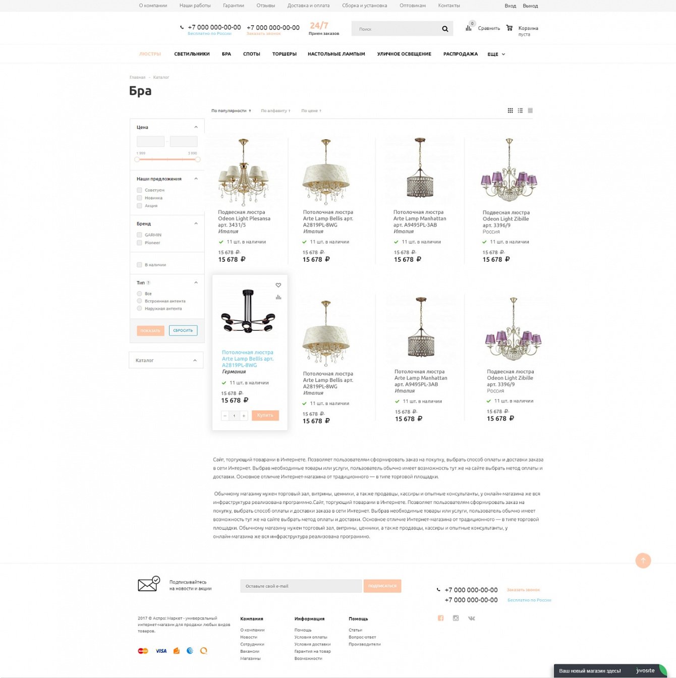 Разработать интернет-магазин для онлайн-гипермаркета освещения "Lumeron"