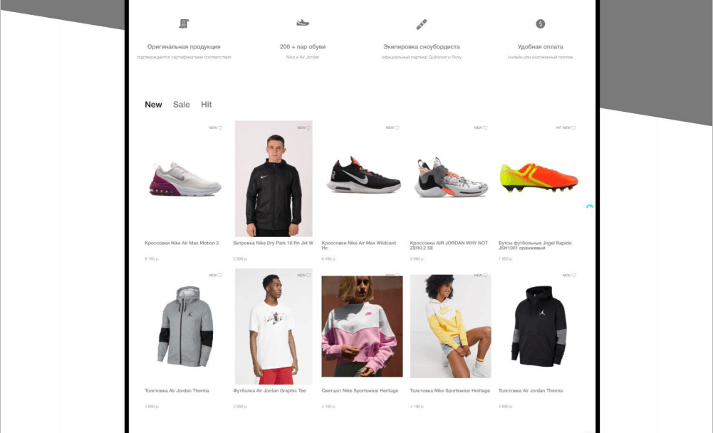 Разработать новый сайт, который бы кардинально отличался от предыдущего по своей стилистике, опираясь на крупных европейских конкурентов в сфере спортивной одежды. Сайт должен был обладать полным набором услуг и дополнительных опций. Кроме того, требовалось создать такой сайт, который можно было бы успешно продвигать за счет SEO-оптимизации, выводя его в ТОП выдачи по поисковым запросам.