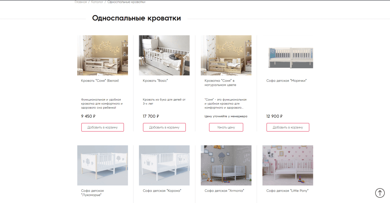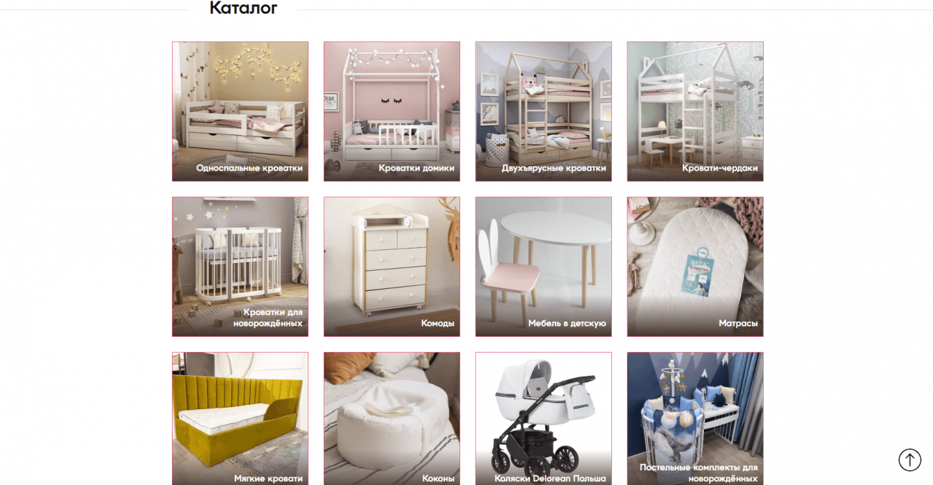 - Каталог товаров, где посетители могут выбрать интересующие их товары, распределенные по категориям.