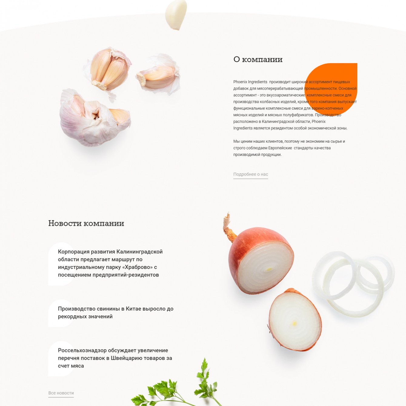 Phoenix Ingredients производит широкий ассортимент пищевых добавок для мясоперерабатывающей промышленности. Основной ассортимент - это вкусоароматические комплексные смеси для производства колбасных изделий, кроме того компания выпускает функциональные комплексные смеси для варено-копченых мясных изделий и мясных полуфабрикатов.
