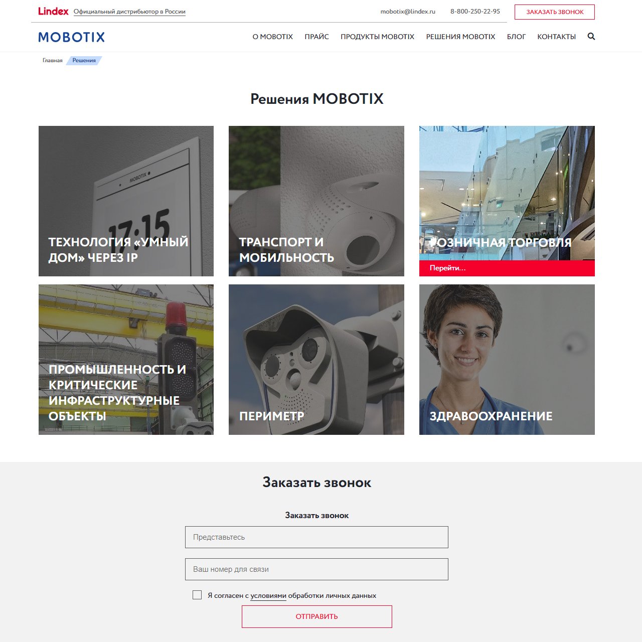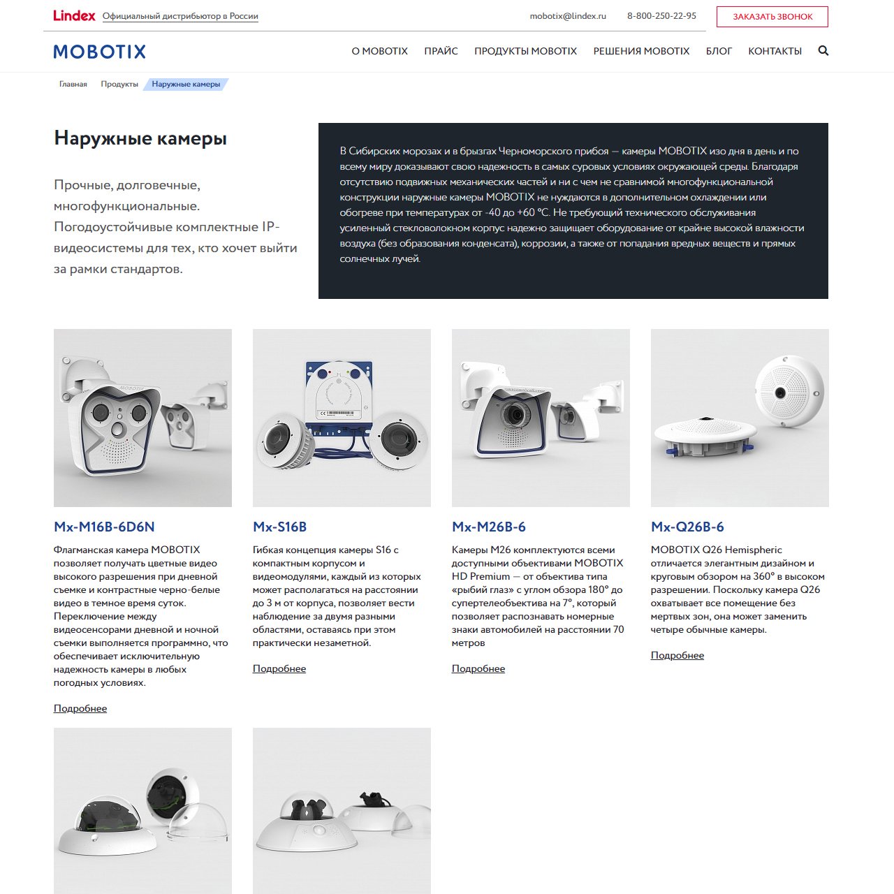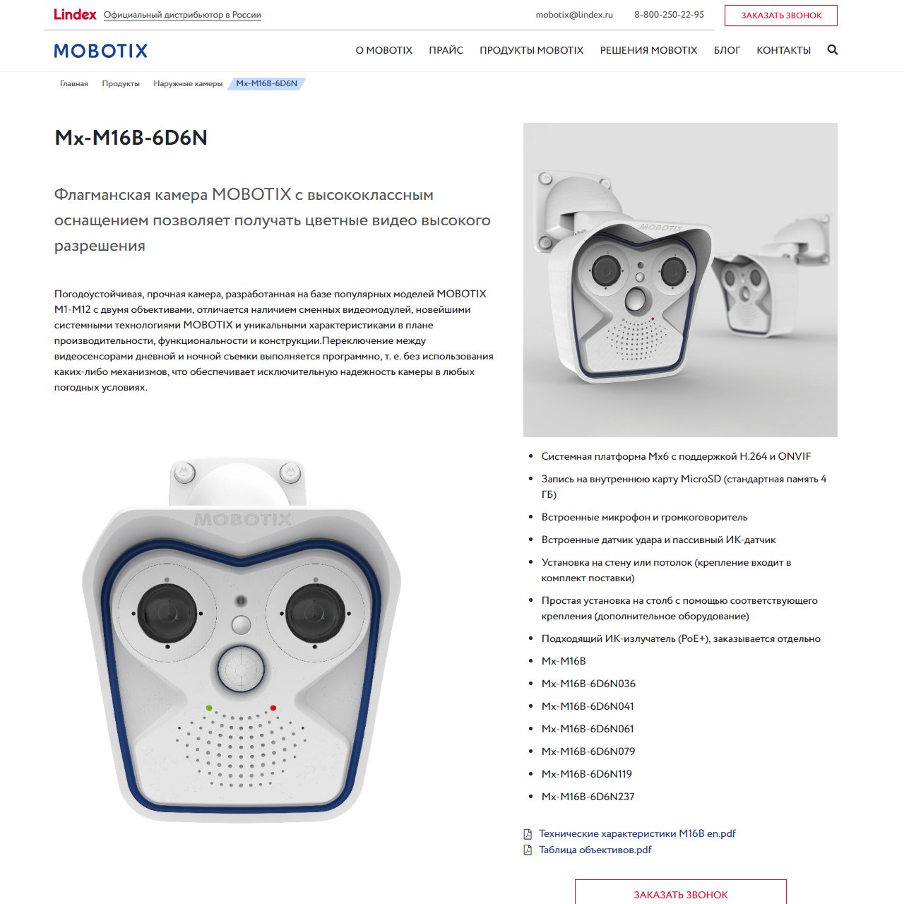 Перед нами стояла задача создать сайт для компании Lindex для продажи технологий MOBOTIX. Сложность состояла в том, что в итоговой работе должны узнаваться оба бренда, но при этом не должно быть явного перетягивания внимания в сторону одного из них.