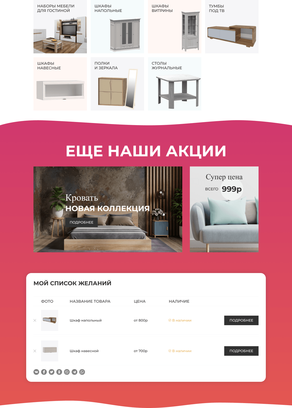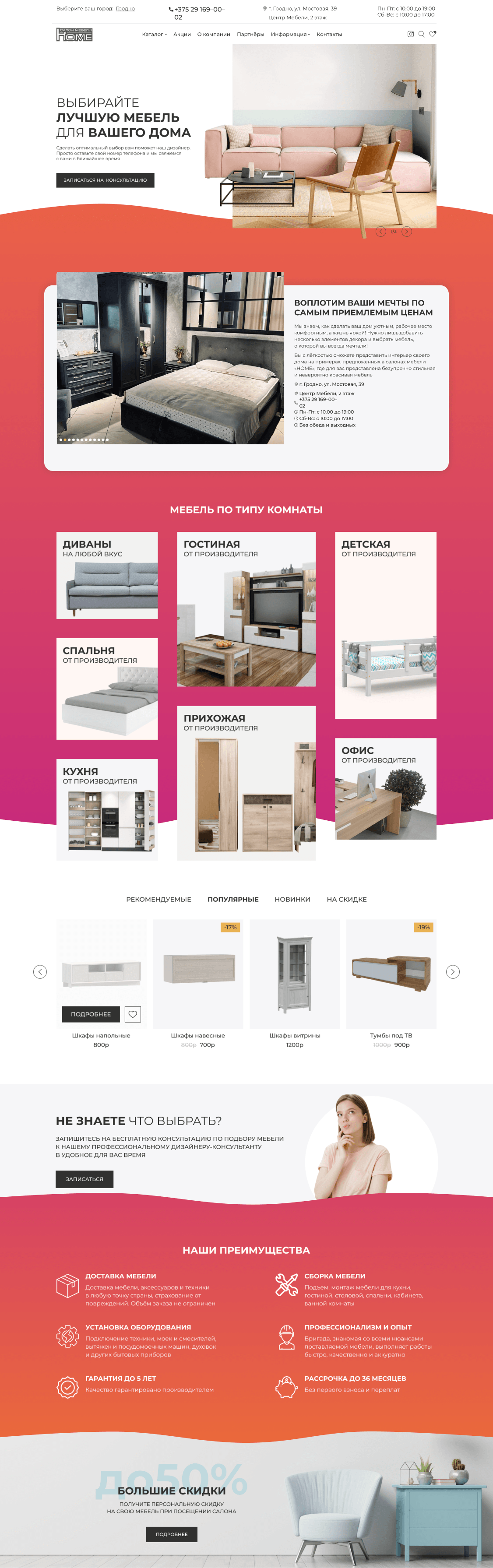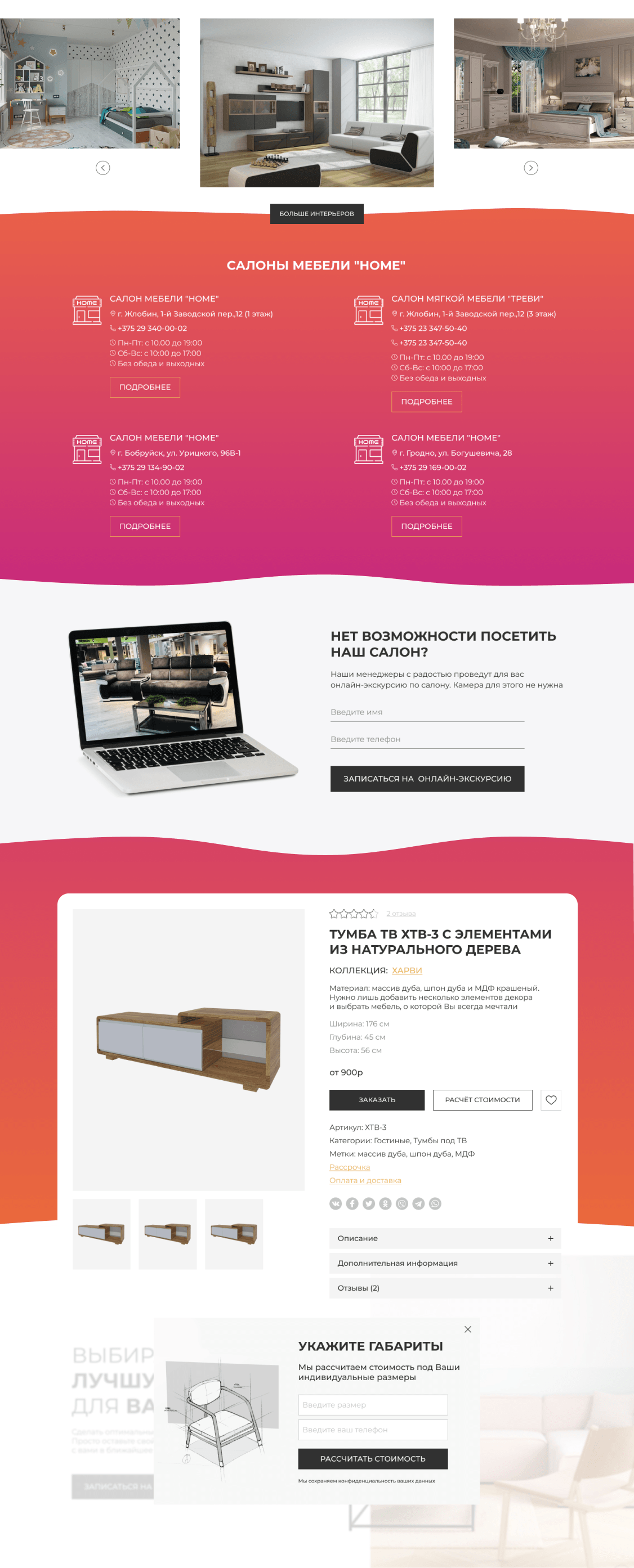 Заказчик обратился к нашей команде с просьбой разработки сайта по ключ. Компания клиента занимается продажей мебели и очень хотела современный и продающий сайт, где бы пользователь мог видеть весь каталог с товарами.
