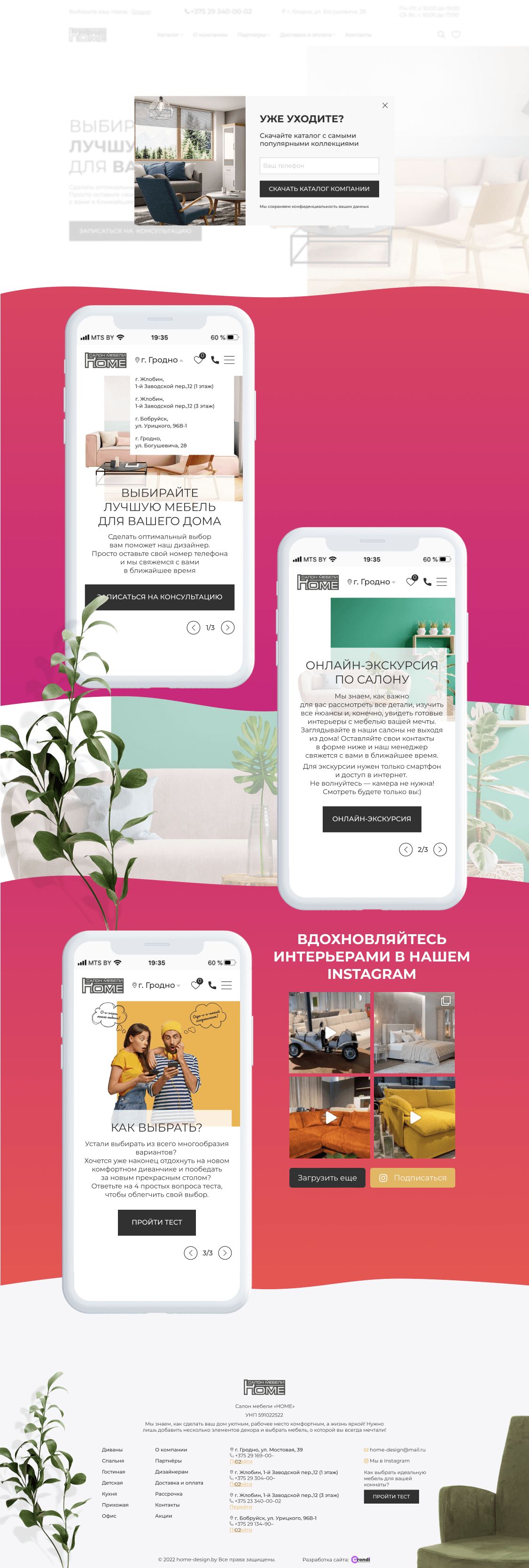 И само собой — мобильная версия, интеграция с лентой инстаграма. Всё должно быть красиво и современно.