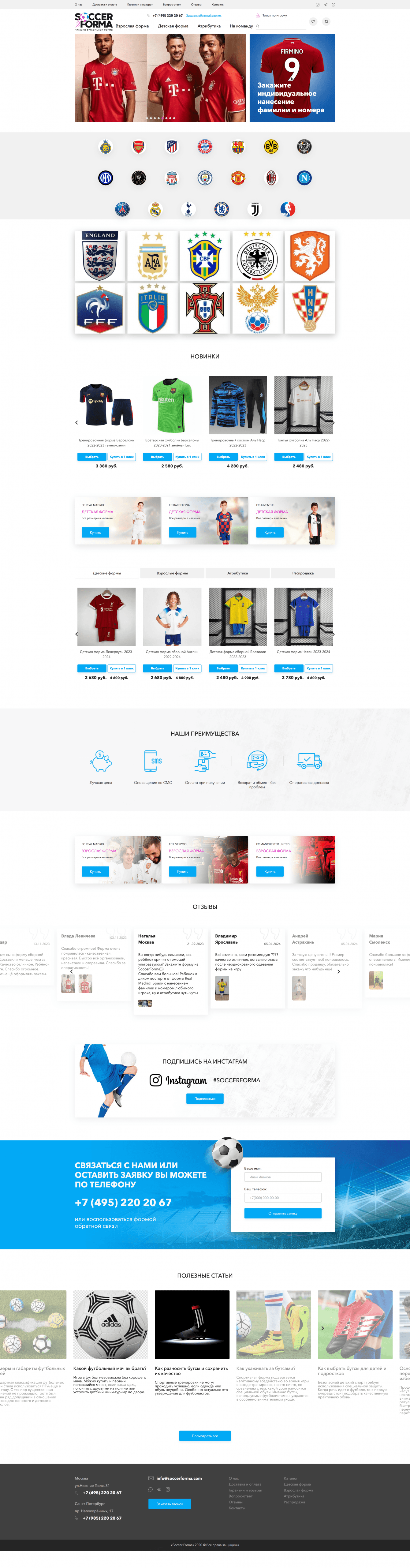 Клиент обратился с задачей по разработке интернет магазина футбольной формы, ориентированного на детский сегмент.