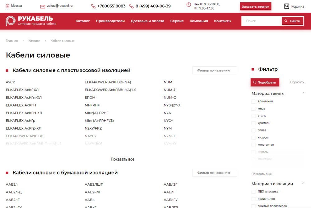 Модернизировать старый сайт компании, разработать удобный, быстрый, интуитивно понятный интернет-магазин кабельной продукции с сохранением контента.