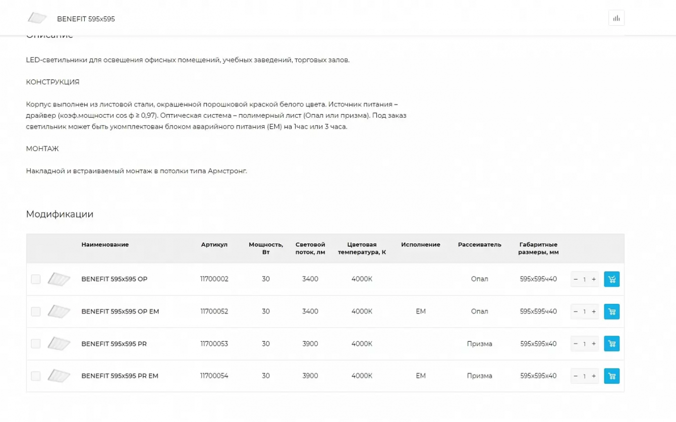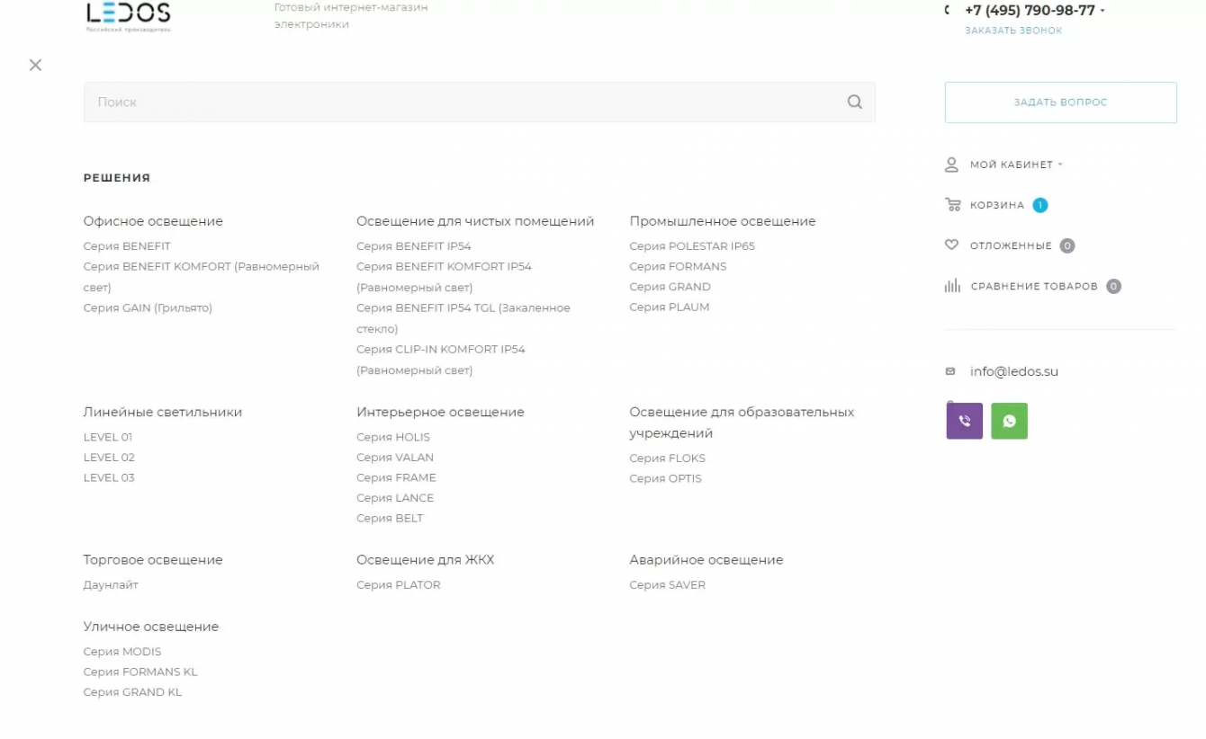 разработка интернет-магазина для продажи осветительных приборов. Важно было сделать магазин с упором на удобство использования инженерами в данной ниже.