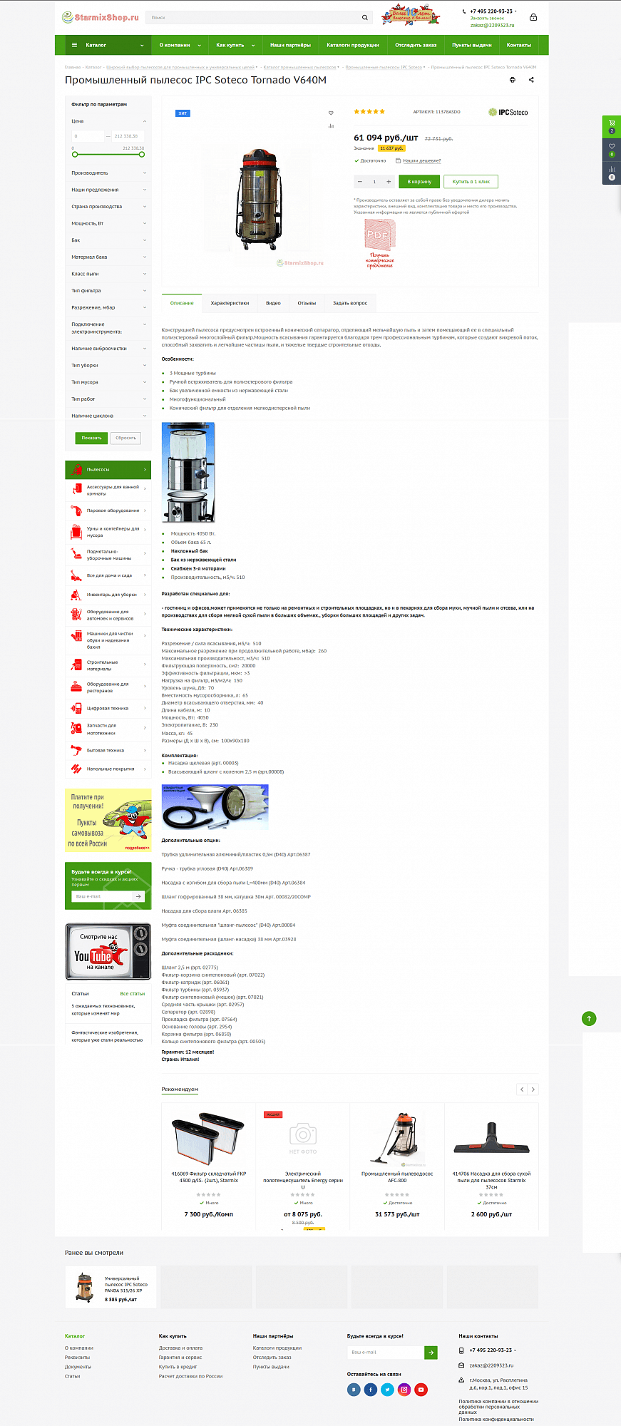 Компания более 10 лет занимается продажей оборудования для уборки, а именно: пылесосов, подметальных и уборочных машин, парового оборудования, инвентаря и комплектующих для уборки. Компания находится в Москве, но продукция поставляется во все регионы России.