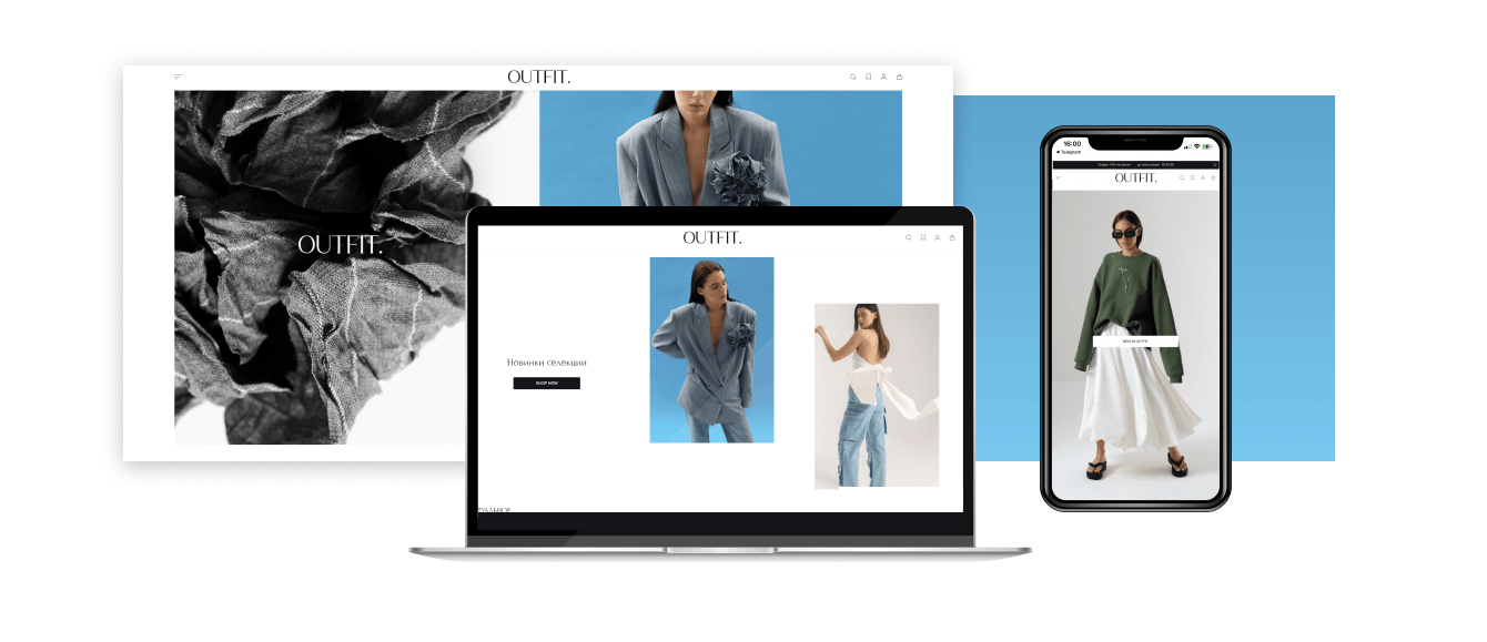 В дизайне сделали акцент на минимализме, который отражает эстетичность Outfit и стремление компании обеспечивать клиентов одеждой, которую можно надеть и сразу пойти по своим делам.