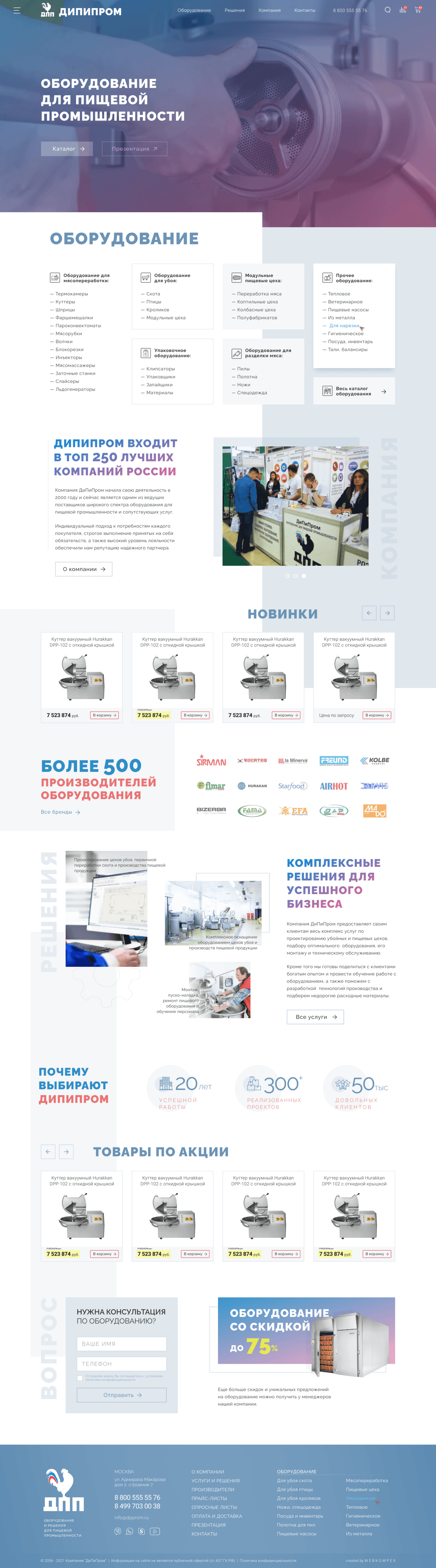 Разработать интернет-магазин для компании ДиПиПром — одного из ведущих поставщиков пищевого оборудования в России.