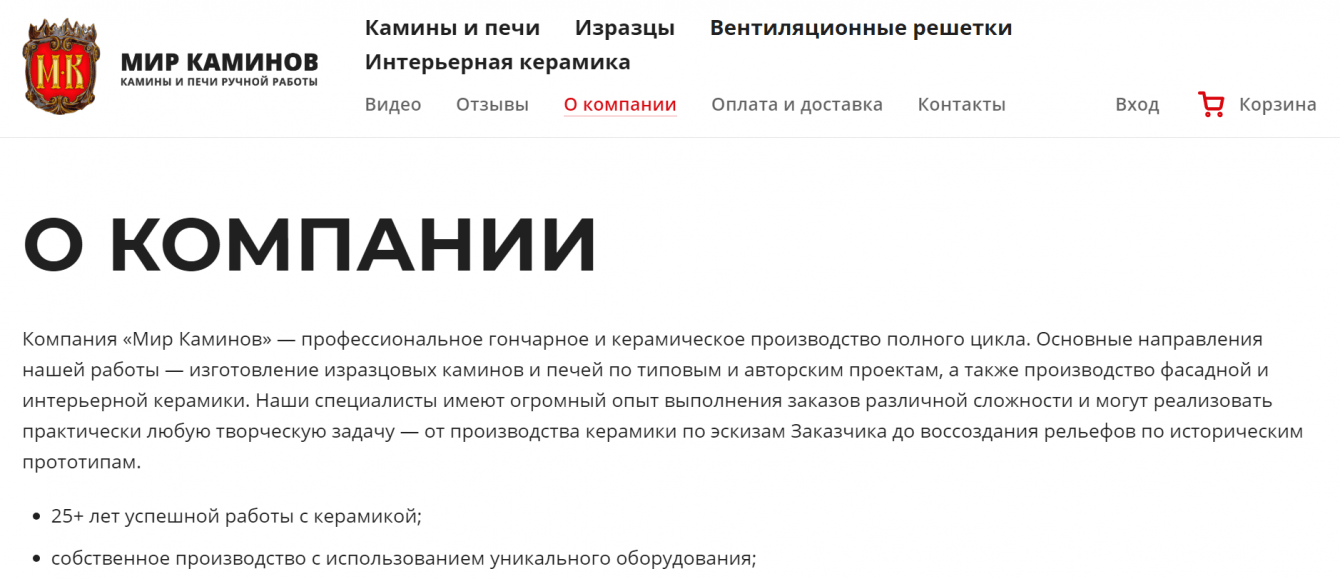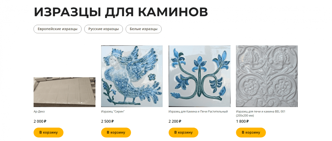 1. Создание удобного и привлекательного онлайн-магазина для продажи изразцовых печей, каминов и керамических изразцов.