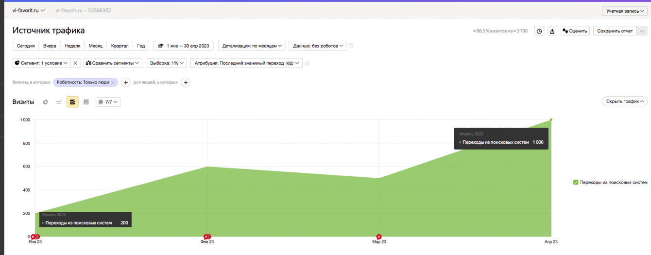 – увеличили трафик по переходам с поисковых систем в 5 раз;