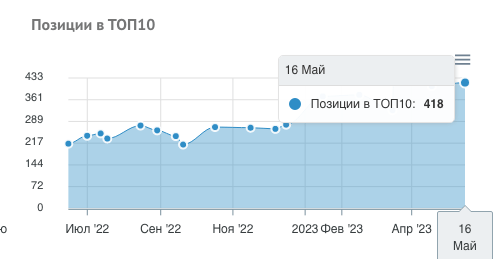 – вывели в топ -10 более 400 запросов (среднечастотных, высокочастотных);