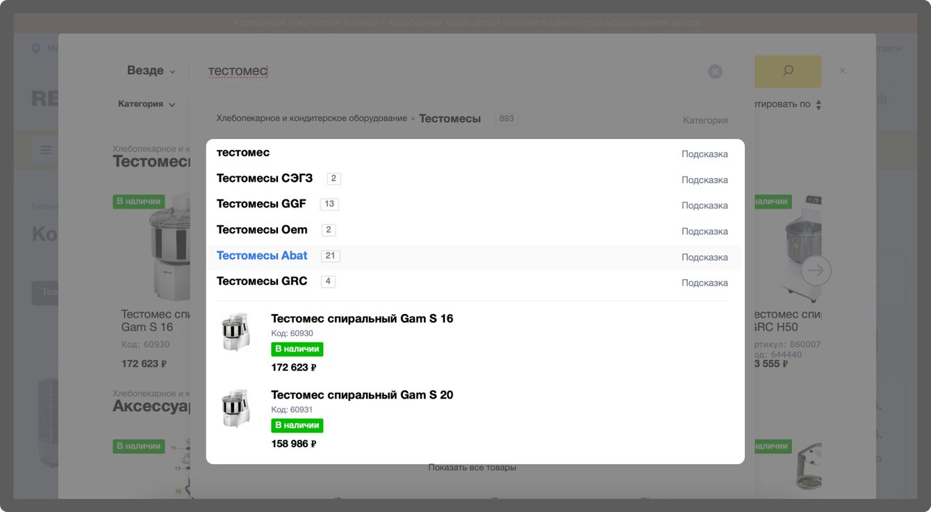 Данные доработки позволили пользователям быстрее находить нужное оборудование и не теряться в каталоге