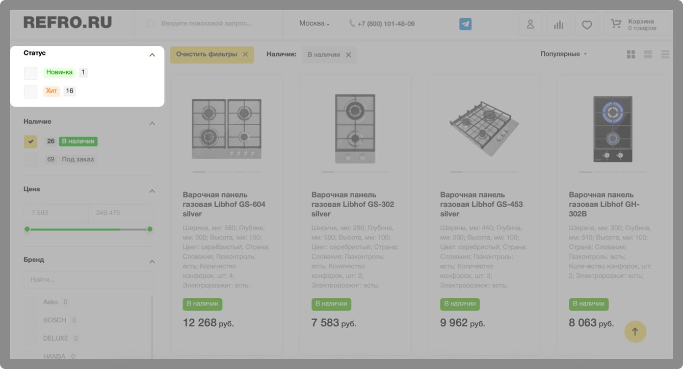 Мы произвели доработку фильтра по статусам товаров: хит, новинка