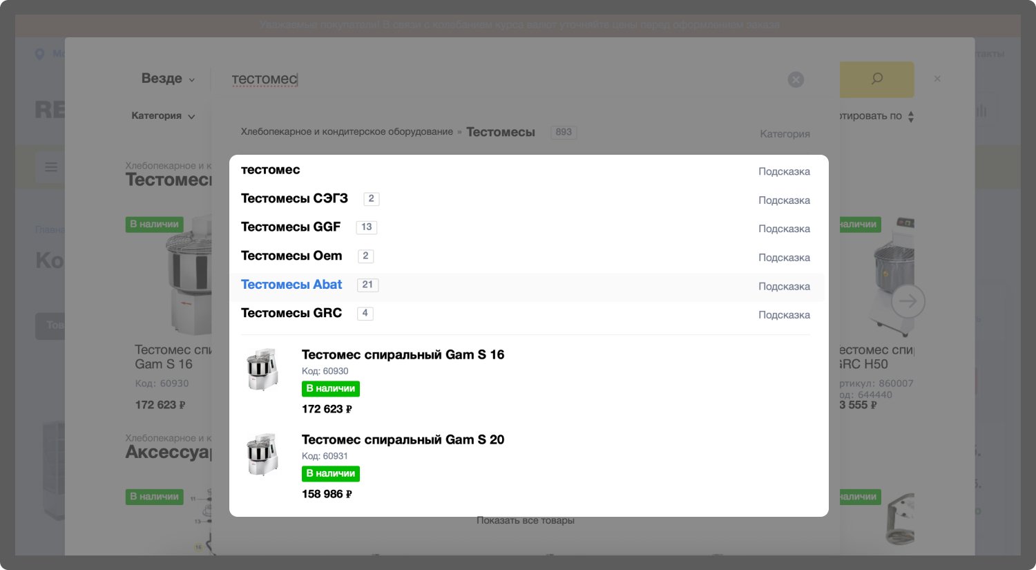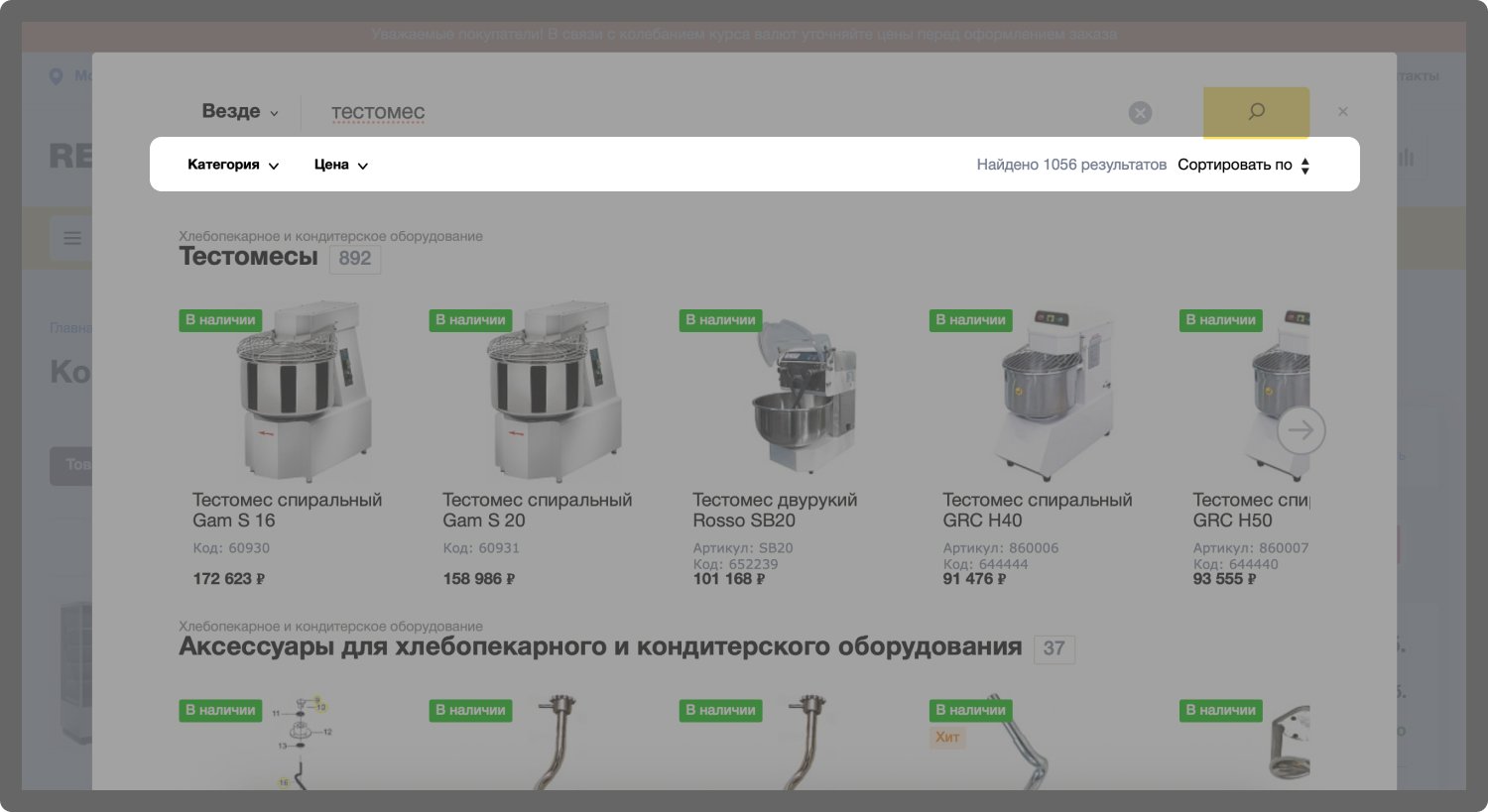 Данные доработки позволили пользователям быстрее находить нужное оборудование и не теряться в каталоге