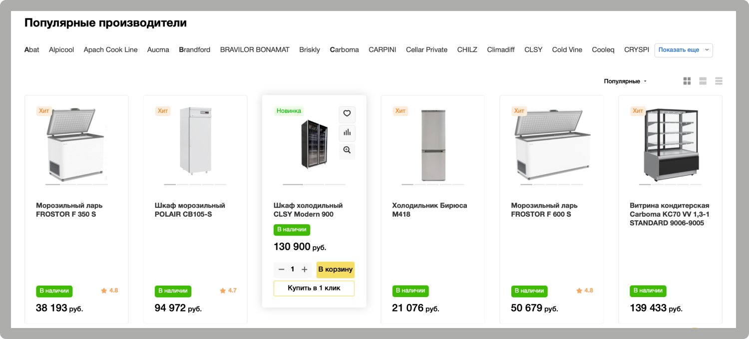 В каталоге оборудования на каждый тип товара были выведены популярные категории, которые пользуются наибольшим спросом среди покупателей